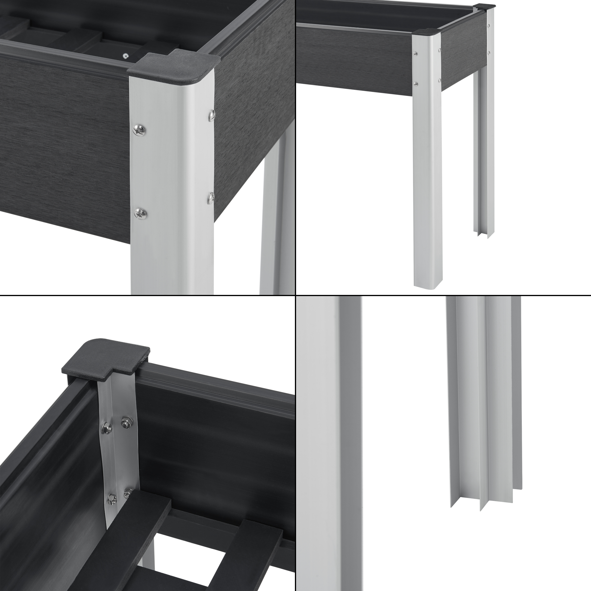 Stratul inaltat tip jardiniera este o alegere practica si eleganta pentru cultivarea de flori, ierburi aromatice sau legume direct pe terasa, balcon ori in gradina. Designul rectangular, finisajul modern gri inchis si pozitionarea la inaltime ofera un plus de confort la plantare si ingrijire.