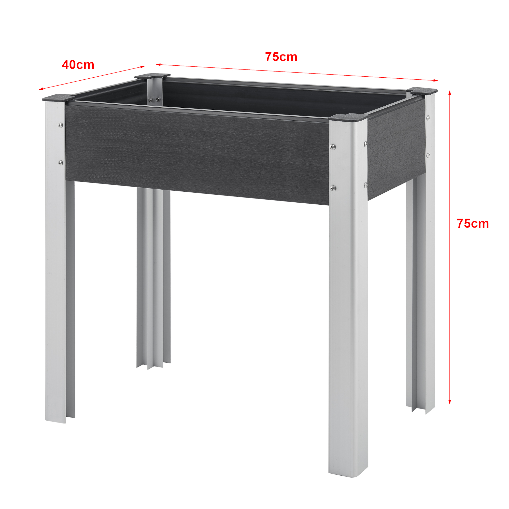 Strat inaltat tip jardiniera 75x40x75 cm, gri inchis, pentru gradina