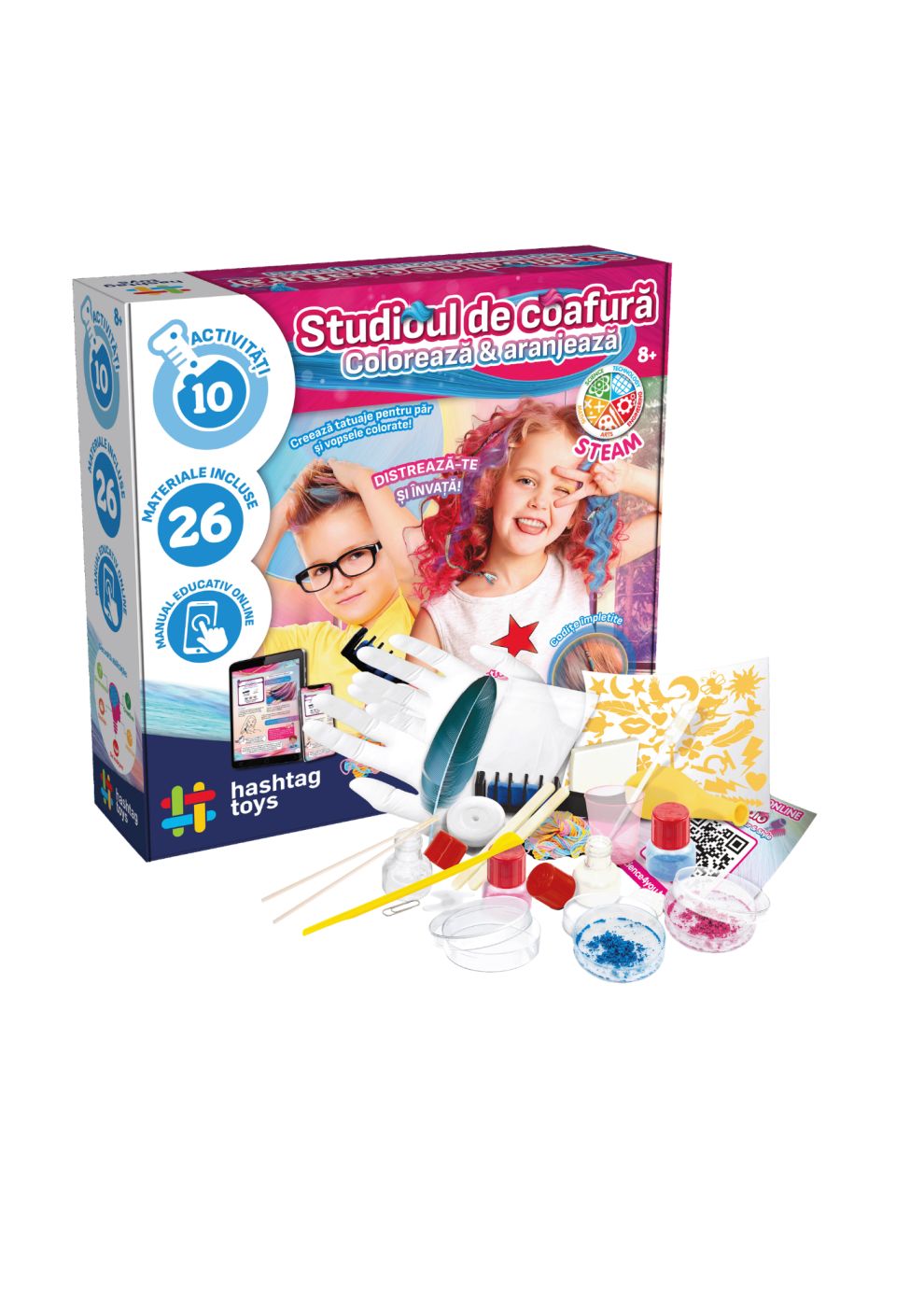Transformă joaca într-o experiență creativă cu acest studio de coafură pentru copii, ideal pentru micii pasionați de stil, culoare și experimente distractive. Setul le permite să creeze șuvițe colorate temporar, tatuaje pentru păr și coafuri originale, ușor de schimbat după spălare. Este o alegere inspirată pentru copii de peste 8 ani care adoră activitățile creative și jocurile de rol.