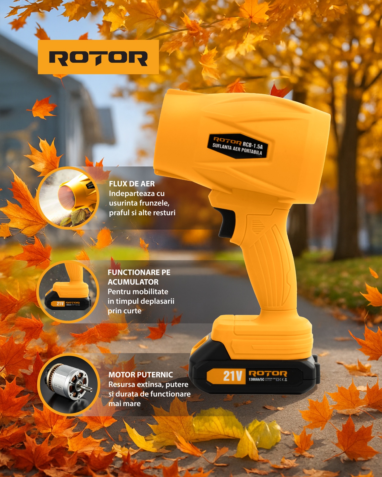 - 1 x suflantă aer pe acumulator ROTOR RCB-1.5A