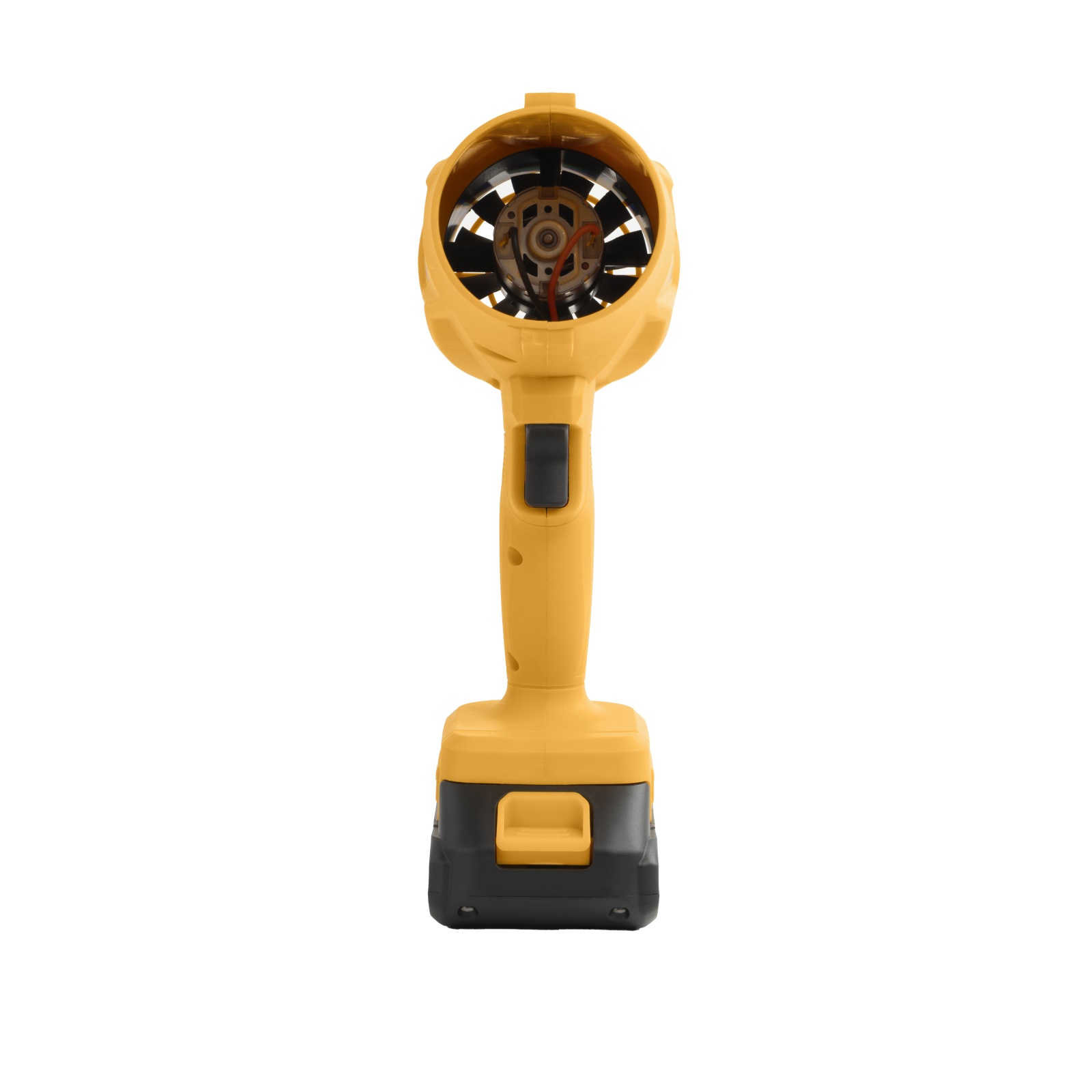 - Montează acumulatorul, apoi pornește suflanta și direcționează jetul către zona de curățat.