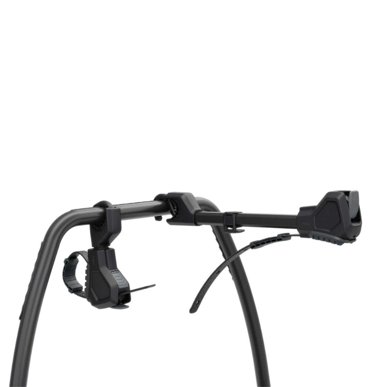 Bratele independente cu cap rotativ si prindere cu curea permit fixarea eficienta a mai multor tipuri de cadru, inclusiv a celor sensibile, precum cadrele din carbon. Distanta generoasa dintre biciclete reduce riscul de atingere in timpul transportului, iar sistemul de inclinare cu pedala iti ofera acces usor la portbagaj, chiar si atunci cand bicicletele sunt montate.
