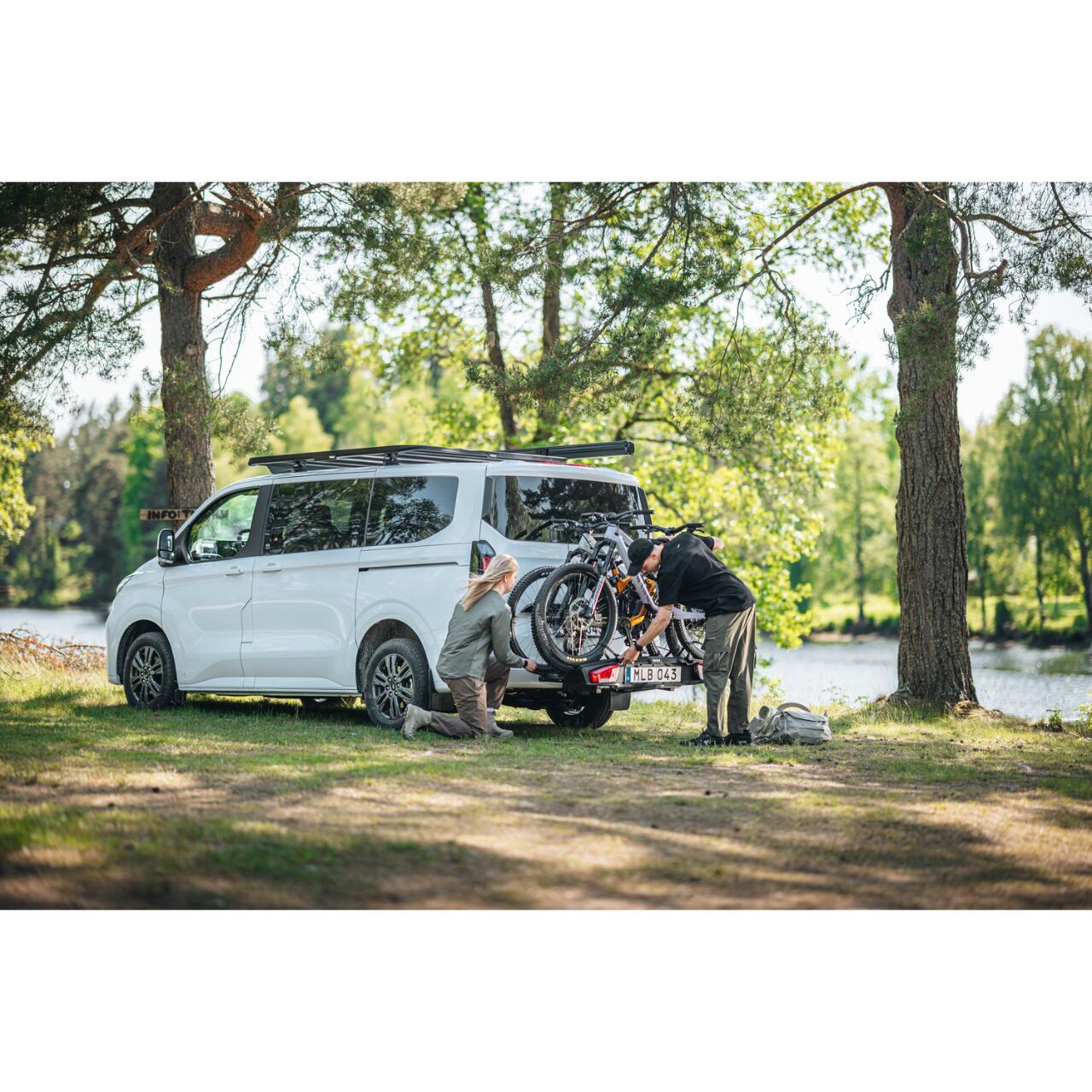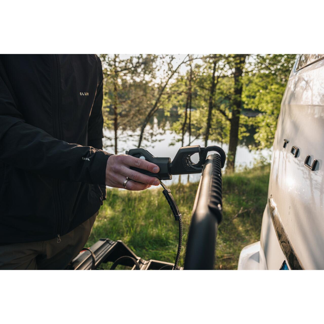 Este ideal pentru vacante, iesiri la munte sau deplasari frecvente cu bicicleta. Incarcarea se face rapid datorita bratelor independente si curelelor rezistente, iar stabilitatea initiala a cuplajului simplifica montarea suportului pe masina. Nu este compatibil cu vehiculele care au roata de rezerva montata pe haion.