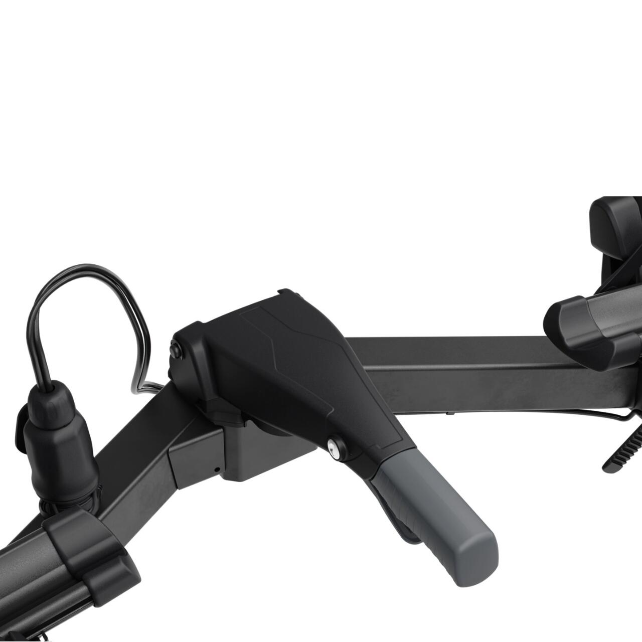 Modelul este gandit pentru utilizare usoara, cu brate independente actionate cu o singura mana, prindere sigura pe cadru si platforma robusta pentru drumuri lungi. Functia de inclinare cu pedala permite accesul la portbagaj chiar si atunci cand bicicletele sunt incarcate, ceea ce il face extrem de practic in utilizarea de zi cu zi.