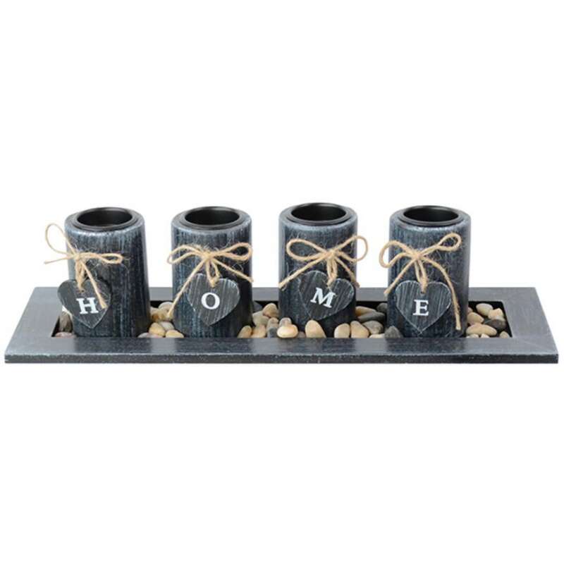 Suport 4 lumanari, model HOME, lemn si pietre naturale, negru, 39x12.5x10 cm, Magic Home GartenVIP DiyLine