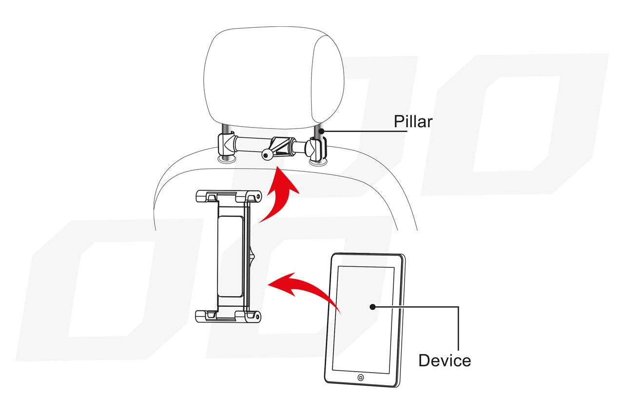Acest suport pentru tableta se monteaza pe spatele scaunelor din fata pe bratele metalice ale tetierei.