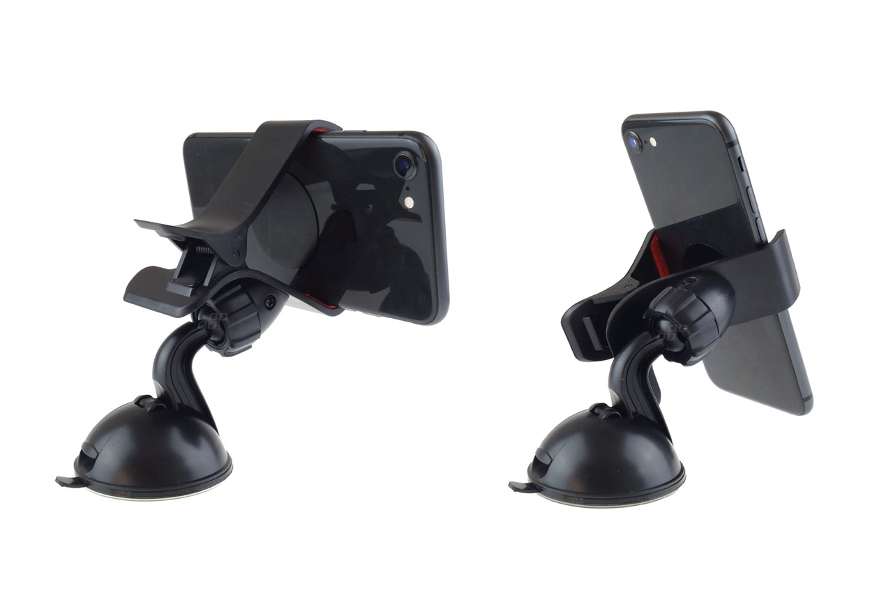 Acest suport pentru telefon este simplu de montat avand un sistem de prindere simplu cu clema pentru telefon si pe parbriz se fixeaza cu ventuza.
