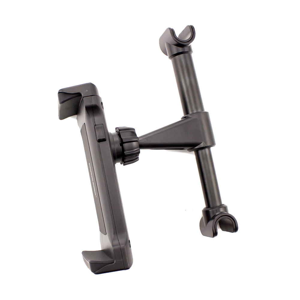 Utilizare: fixează suportul pe tetierele scaunelor din față, ajustează deschiderea brațelor în funcție de tabletă, apoi setează unghiul dorit pentru vizionare.