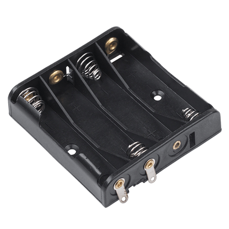 Utilizare: introduceți cele 4 baterii AA respectând polaritatea marcată în suport, apoi conectați suportul în circuit prin bornele metalice (fără fire incluse).