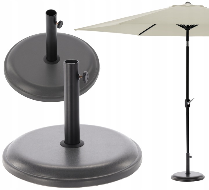 Material: Beton de inalta calitate, care asigura durabilitate si rezistenta la conditiile meteorologice. Culoare: Gri Diametrul bazei: 45 cm, asigurand stabilitate fara a ocupa prea mult spatiu. Grosimea bazei: 5 cm , care adauga soliditate structurii pastrand in acelasi timp aspectul estetic. Inaltime totala: Aproximativ 32 cm , ideala pentru montarea stabila a umbrelelor de diferite inaltimi. Greutate: Aproximativ 16 kg, suficient de greu pentru a tine umbrela chiar si in conditii de vant puternic. Potrivit pentru umbrele cu diametrul de 30-38mm Cauti o baza solida si stabila pentru o umbrela care sa iti ofere umbra si racoare in zilele caniculare? Baza noastra de umbrela din beton de inalta calitate intr-o culoare neagra eleganta este solutia perfecta. Datorita greutatii sale de aproximativ 16 kg si dimensiunilor selectate corespunzator, ofera o stabilitate excelenta pentru umbrelele cu un diametru al piciorului de 30 pana la 38 mm.Conceput pentru umbrele cu diametrul piciorului de 30 pana la 38 mm, astfel incat se potriveste multor modele de umbrele populare.Baza noastra de umbrela nu este doar functionala, ci si estetica, facandu-l un element decorativ perfect pentru gradina, terasa sau balcon. Asigura stabilitatea si siguranta utilizarii umbrelelor, protejand impotriva miscarii necontrolate sau a rasturnarii din cauza vantului. Instalazea: Pregatirea santierului: Asigurati-va ca zona in care va fi plasata umbrela este plata si stabila. Introducerea umbrelei: Introduceti piciorul umbrelei in orificiul din baza de beton. Asigurati-va ca se potriveste perfect si ca nu exista prea multa slabire. Asigurarea umbrelei cu un surub: Localizati orificiul pentru surubul de montare. Introduceti surubul prin orificiu. Strangeti surubul: strangeti surubul de montare pana cand piciorul umbrelei este fixat bine pe baza. Aveti grija sa nu o strangeti prea mult pentru a nu deteriora piciorul sau baza umbrelei.
