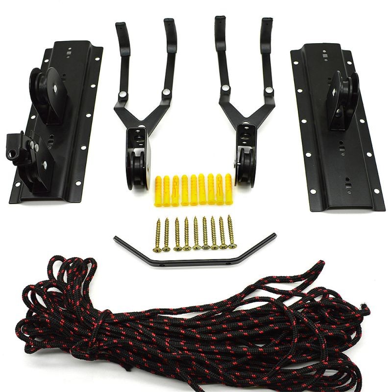Utilizare: montează suportul pe tavan folosind accesoriile incluse, fixează cârligele pe bicicletă și folosește frânghia cu scripete pentru a o ridica și coborî controlat. Potrivit pentru depozitarea unei singure biciclete, model universal.