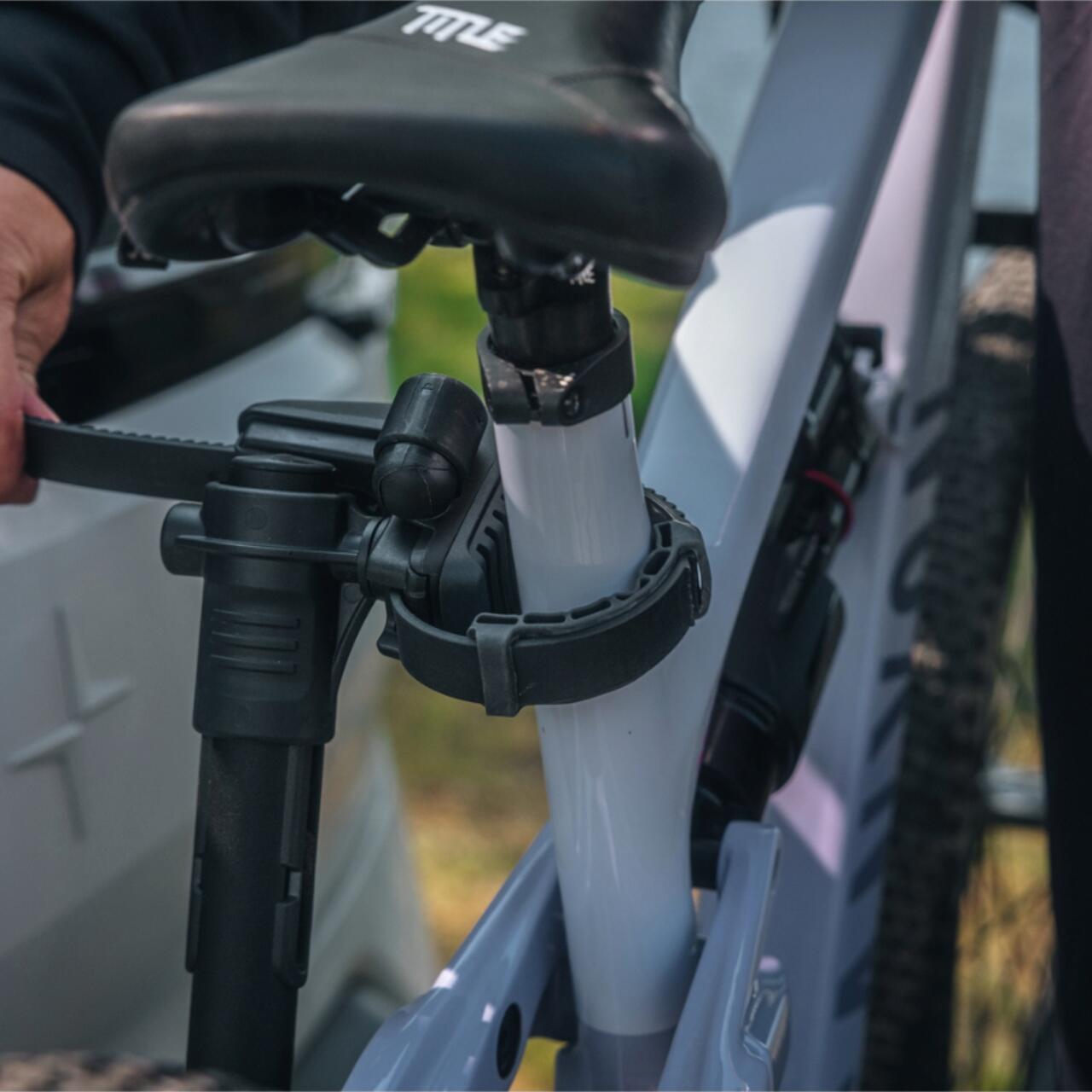 Construit pe o platformă fixă, suportul are un profil jos și un design modern, iar când nu este încărcat îți permite accesul la portbagaj fără să fie nevoie să îl demontezi. Brațul individual de prindere și capul pivotant se adaptează mai multor tipuri de cadre, de la biciclete de oraș până la modele MTB sau gravel.