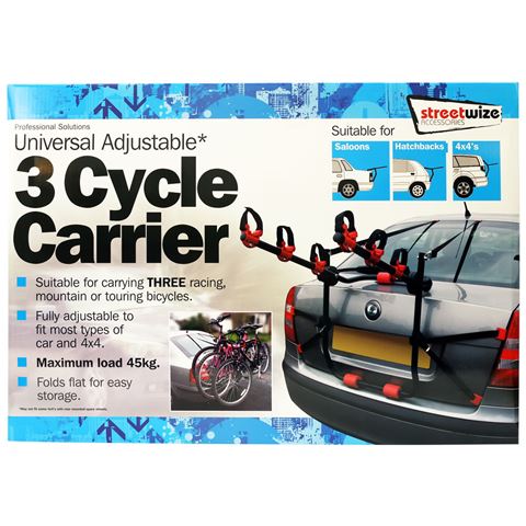 Suportul de biciclete Streetwize pentru 3 biciclete este alegerea practica pentru transportul bicicletelor in vacante, excursii sau iesiri de weekend. Cu prindere pe haion sau pe capota spate, acest model universal este potrivit pentru mai multe tipuri de caroserie, oferind o solutie sigura si usor de utilizat.