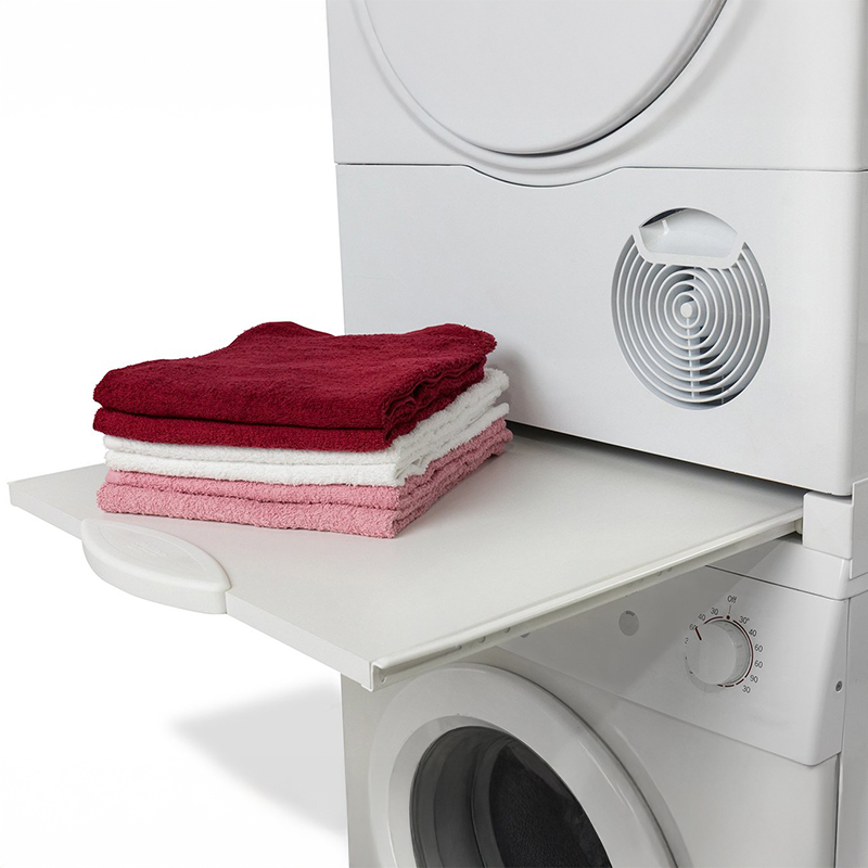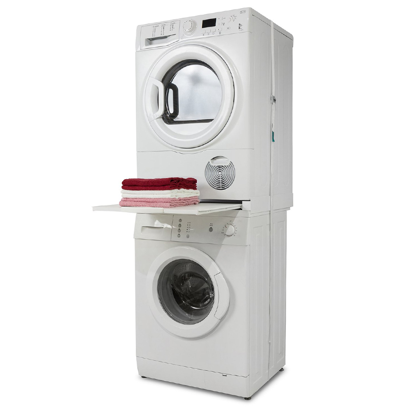 Suport Cadru pentru Suprapunere Uscator - Masina de Spalat Rufe cu Polita Retractabila Incorporata, Alb