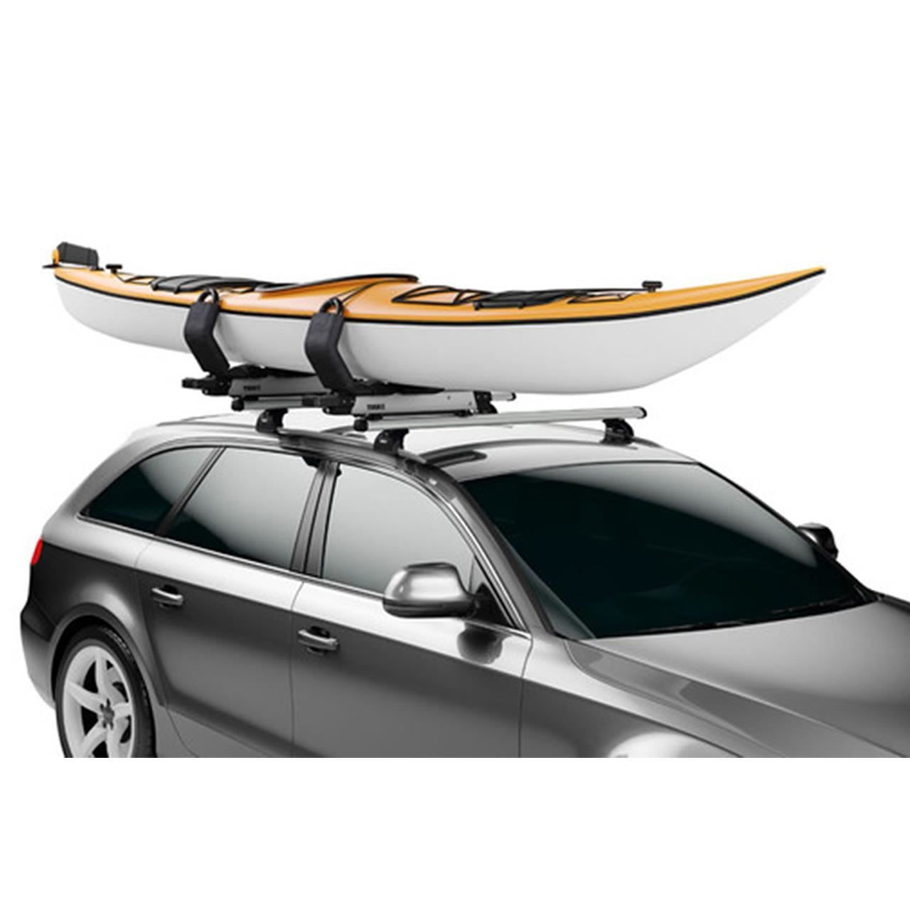 Utilizare: suportul este potrivit pentru transportul unui caiac cu lățime de până la 80 cm și greutate de până la 35 kg. Se montează exclusiv pe barele profesionale Thule ProBar, pentru a asigura spațiul necesar în timpul încărcării și descărcării.