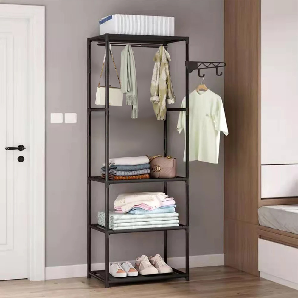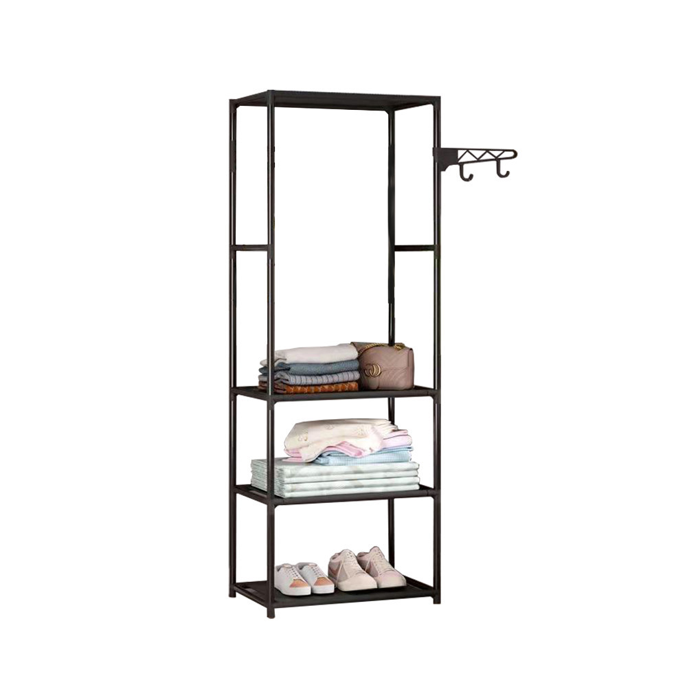 Suport de haine Leziter LRA-03 negru, cu 3 rafturi si bara pentru umerase