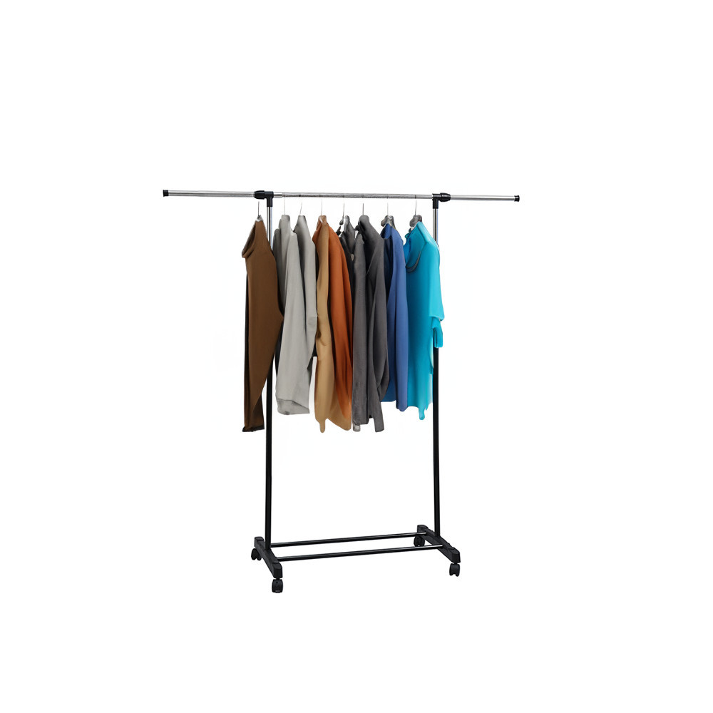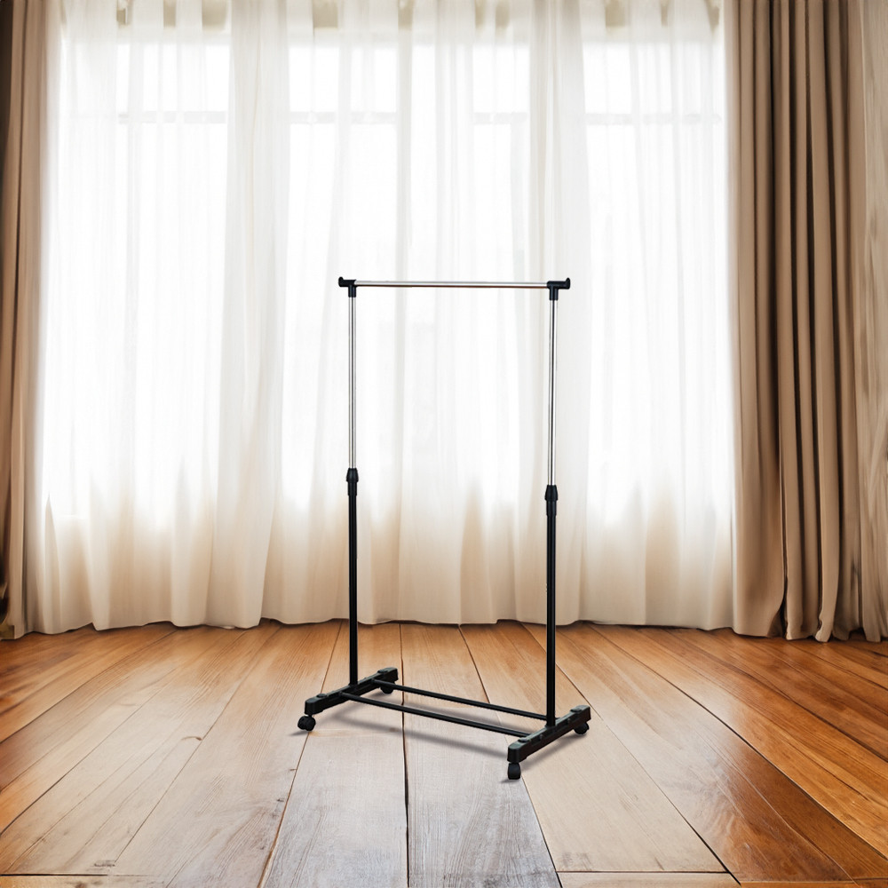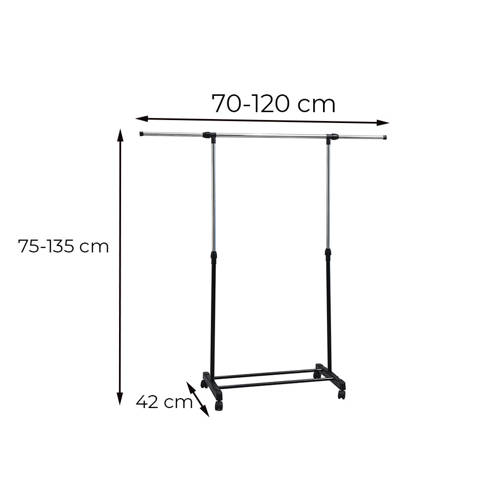 Suport de haine Leziter LRA-06 negru, reglabil pe inaltime, cu roti si raft pantofi