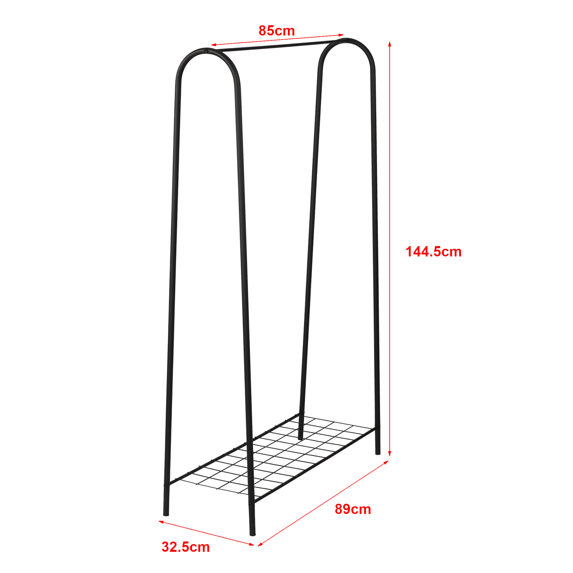 Suport de haine metalic Hvorslev, negru, cu raft inferior pentru pantofi