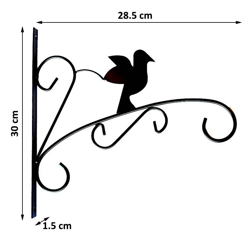 Utilizare: fixează suportul pe un perete solid cu dibluri/șuruburi potrivite (neincluse), apoi agață ghiveciul sau coșul cu flori. Recomandat pentru utilizare la exterior sau interior, în zone bine ventilate.