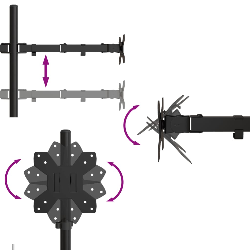 Suport de perete pentru monitor dublu VESA 75/100 mm negru oțel GartenMobel Dekor