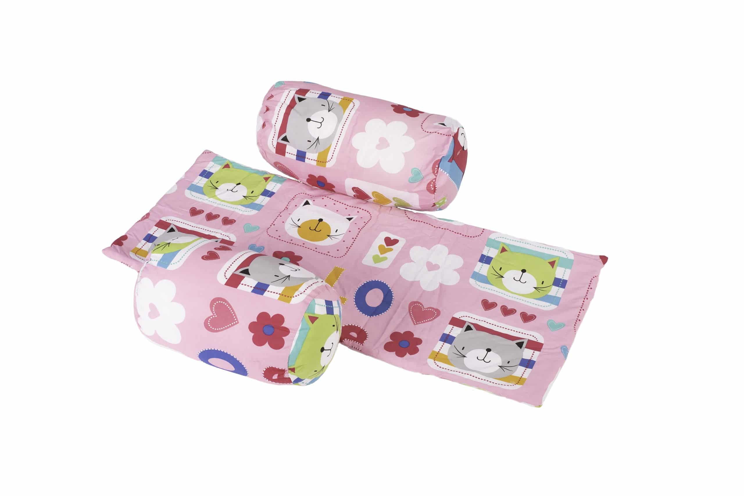 Materialele sunt atent alese pentru pielea sensibila a celor mici: fetele sunt realizate din bumbac 100%, placut la atingere, iar paturica include strat impermeabil pentru protectia saltelei. Forma ergonomica si umplutura moale contribuie la un plus de siguranta in timpul odihnei.
