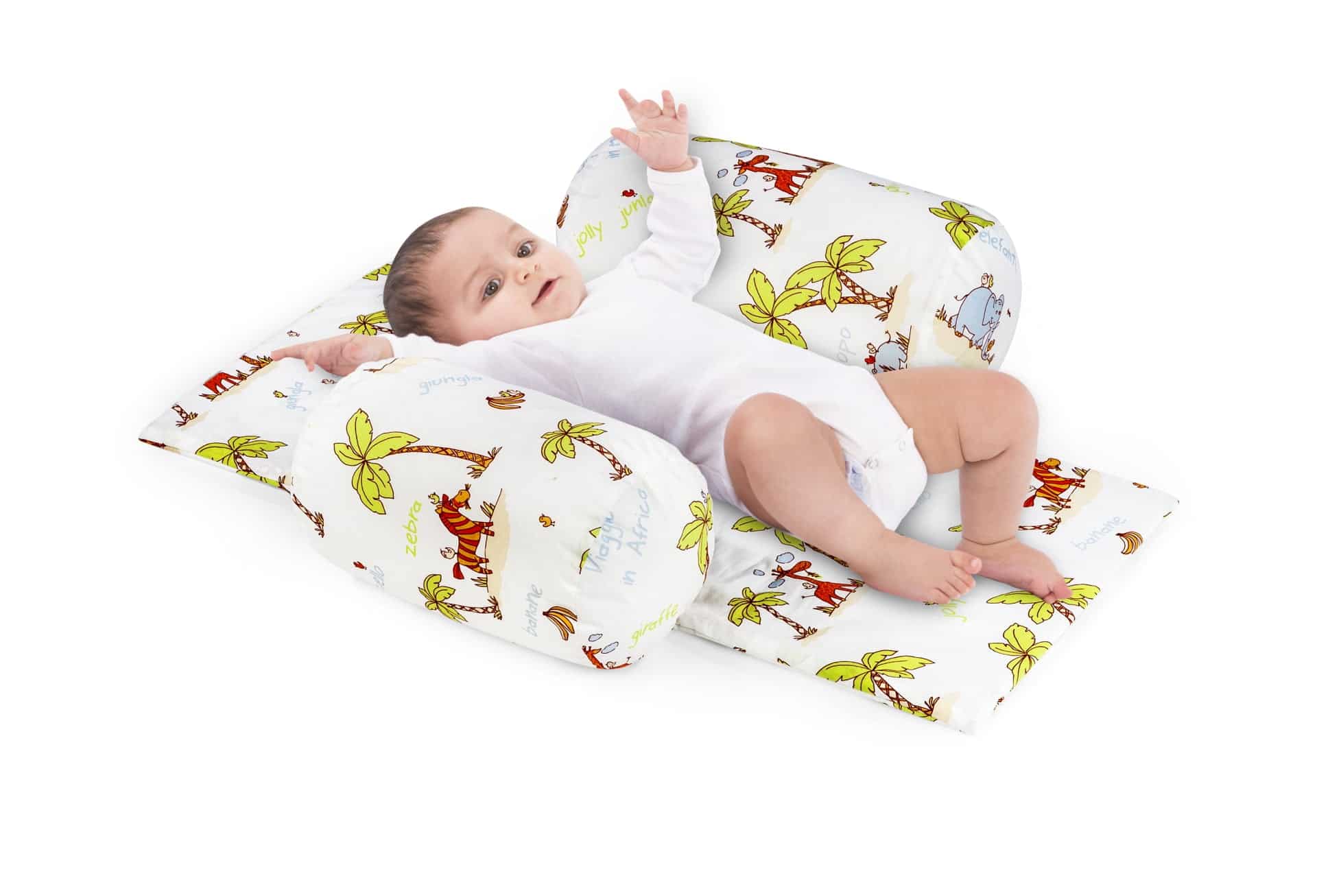 Acest suport ergonomic pentru bebeluși este conceput pentru a reduce riscul lovirii de marginile pătuțului, oferind susținere și protecție în timpul odihnei. Păturica cu strat impermeabil ajută la protejarea saltelei, fiind o soluție utilă în rutina zilnică a părinților.