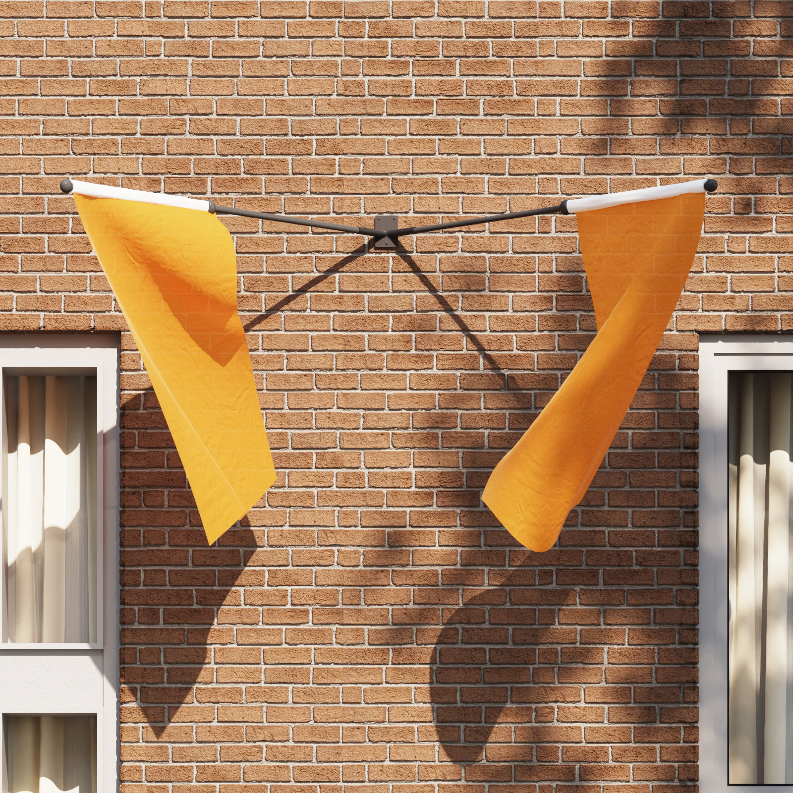 Suport de steag pentru 2 steaguri, montat pe perete, din oțel negru GartenMobel Dekor
