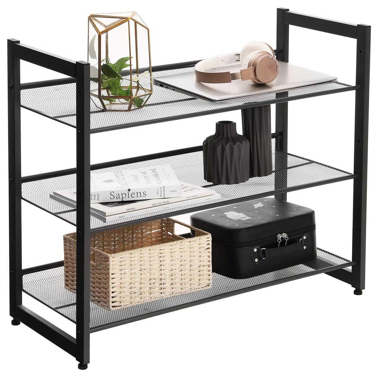 Suport depozitat incaltaminte, Songmics, 3 polite, metal, negru, 74x30.7x62.8 cm