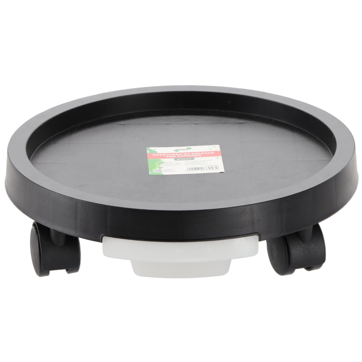 Suport ghiveci rotund cu roti si tava colectare apa, plastic rezistent, 28 cm, negru Household NewTrend
