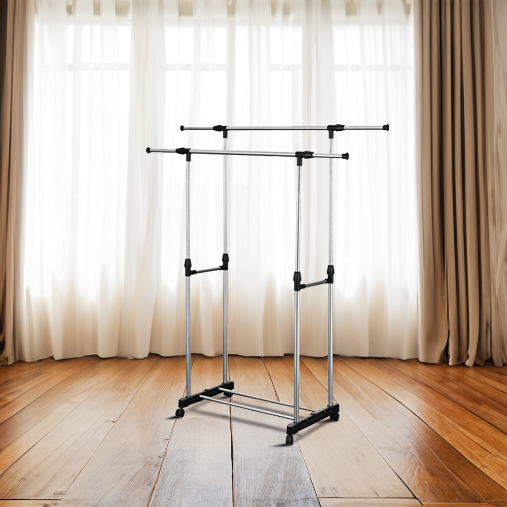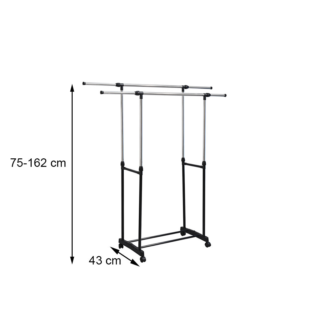 Suport haine Leziter LRA-07 negru, dublu, reglabil pe inaltime, cu roti