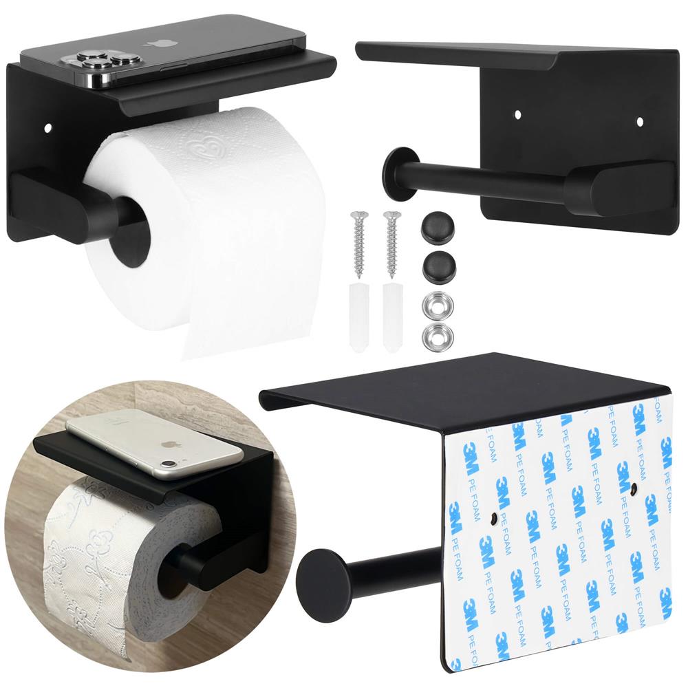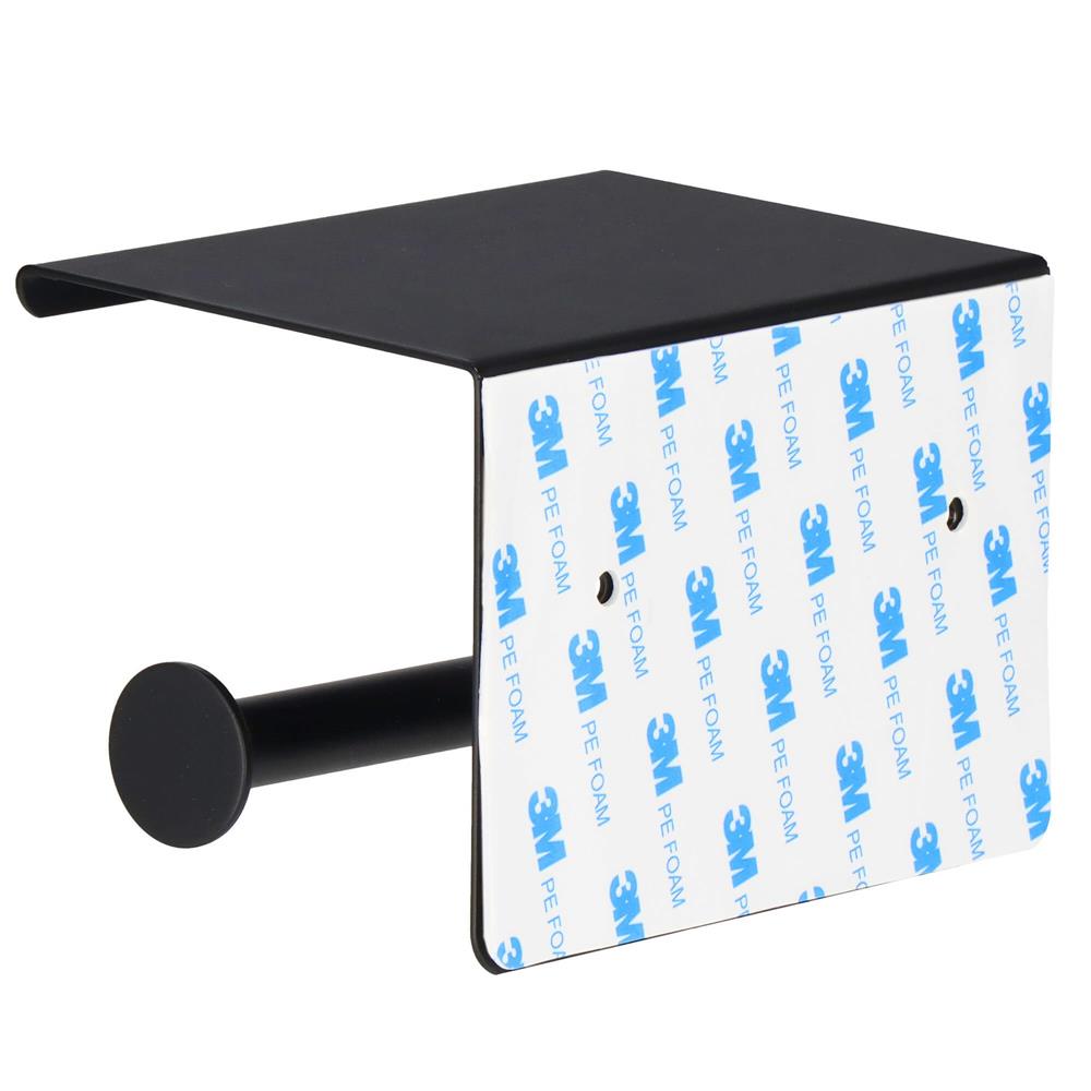 Suport hartie igienica din otel cu raft, montaj fara gaurire, negru