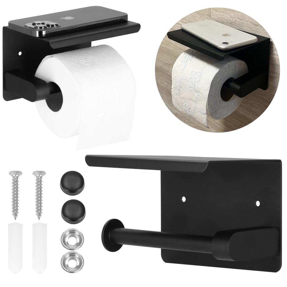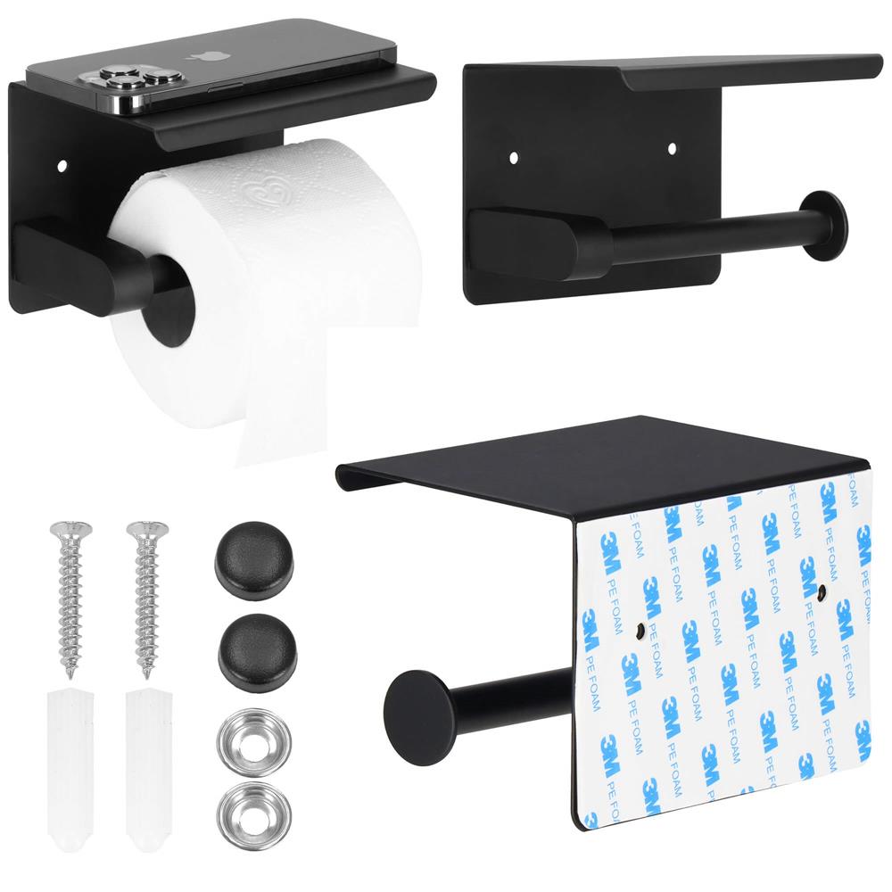 Alege un suport hartie igienica cu raft practic si elegant, ideal pentru orice baie moderna sau clasica. Realizat din otel cu finisaj negru mat, acest accesoriu de baie iti ofera un loc sigur pentru rola de hartie si un raft util pentru telefon, odorizant sau alte obiecte mici. Se monteaza usor, fara batai de cap, fie cu banda 3M inclusa, fie cu suruburile din pachet.