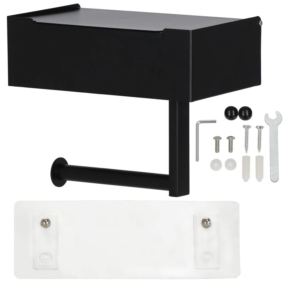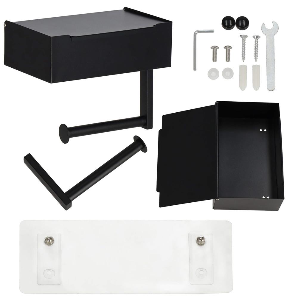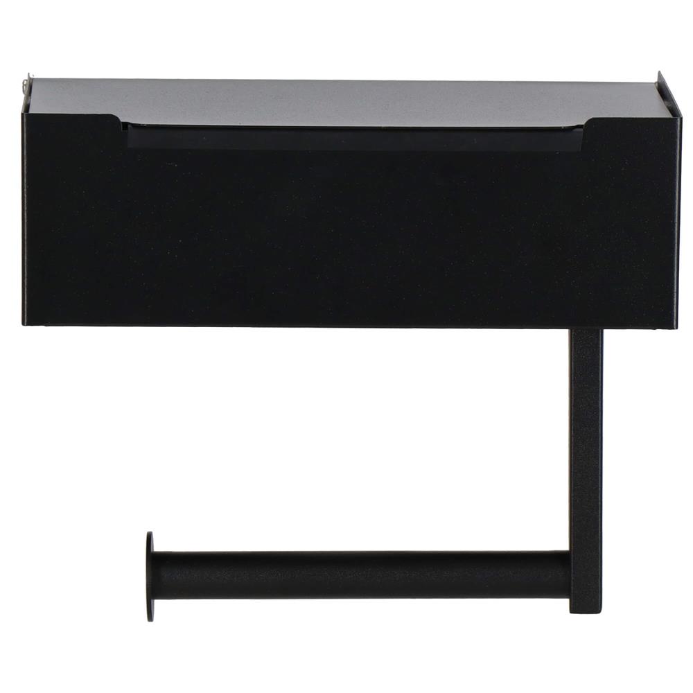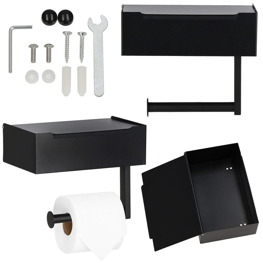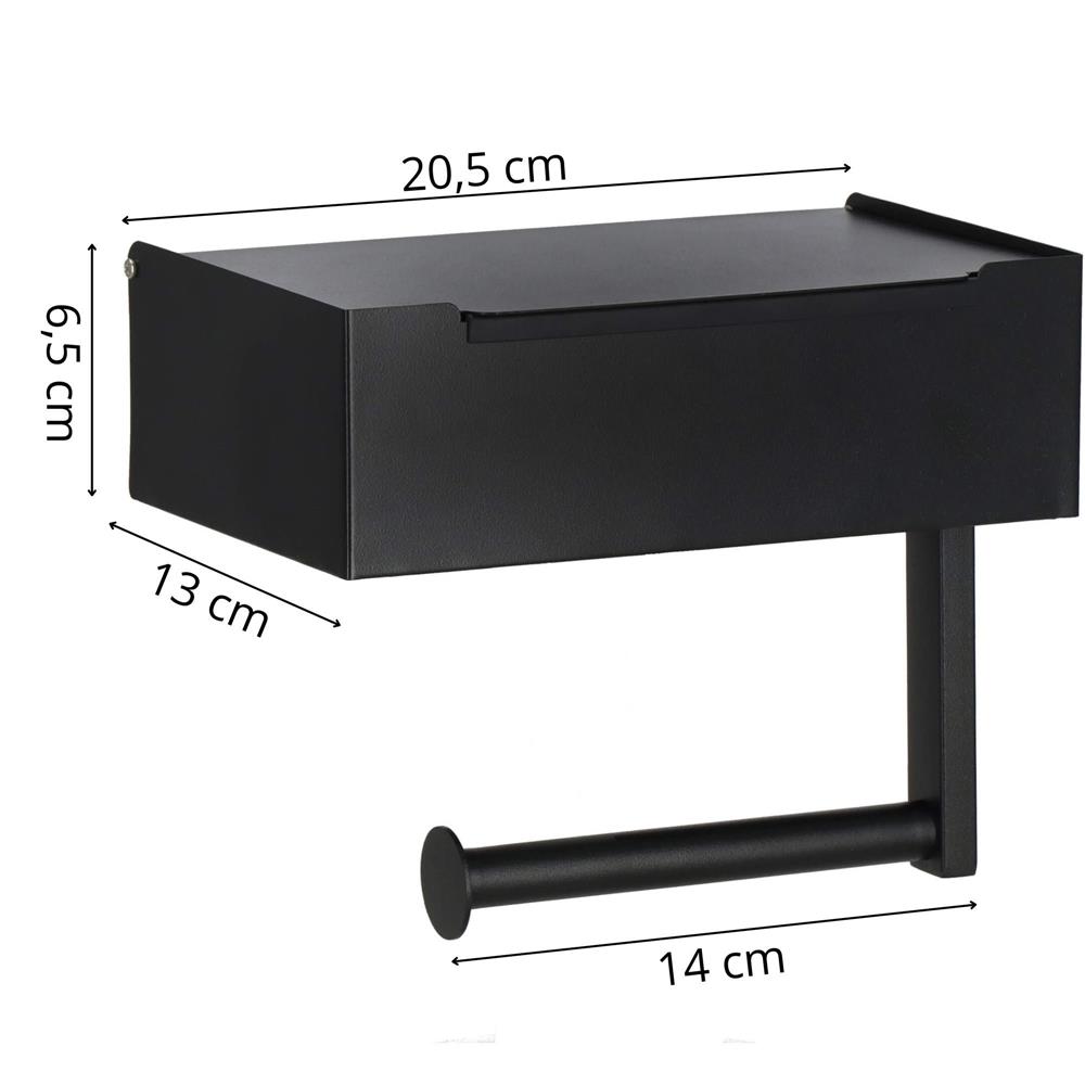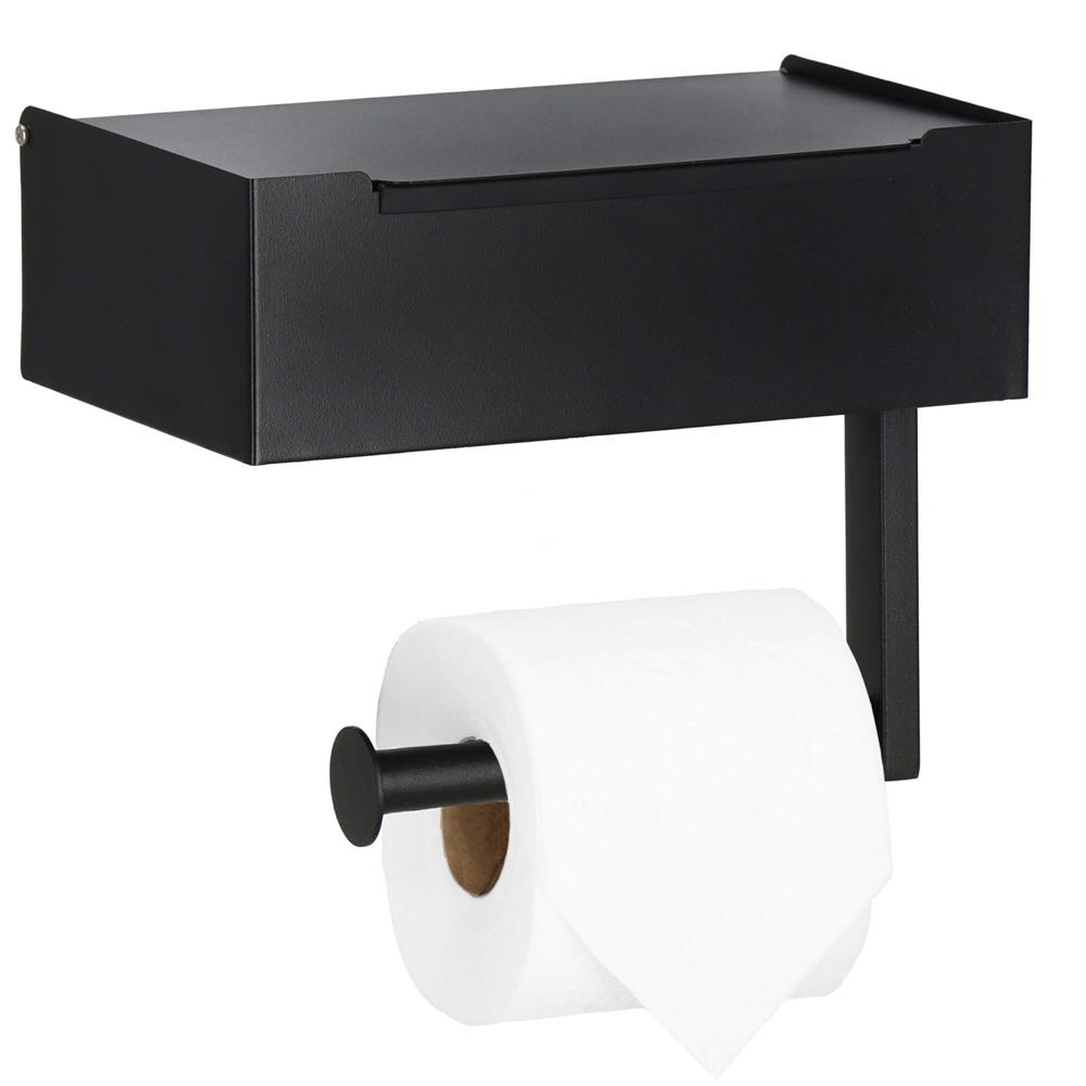 Suport hârtie igienică din oțel inoxidabil cu sertar, 22 cm, negru mat