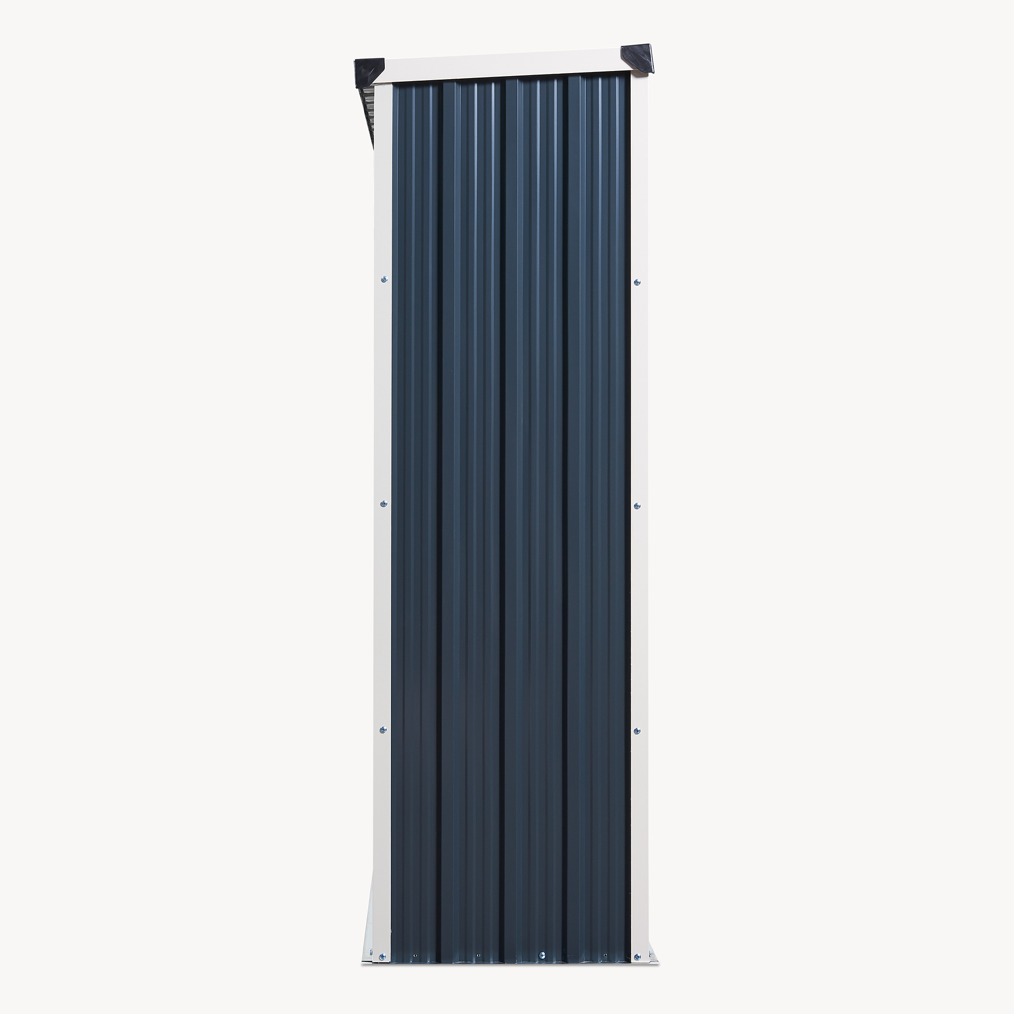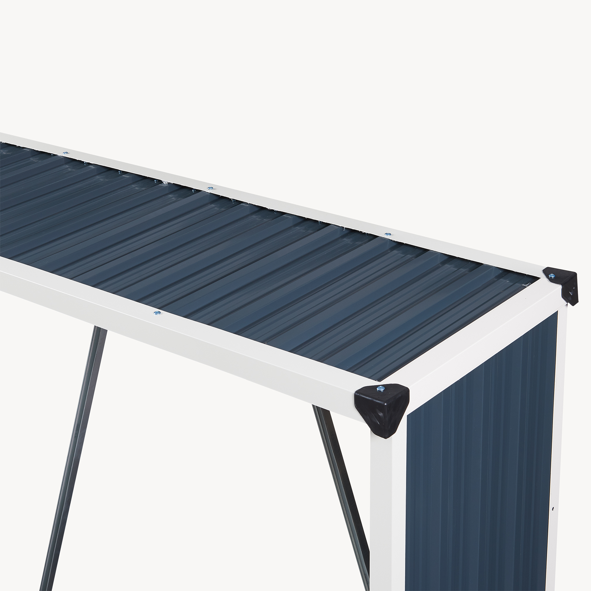 Cu un design modern în nuanță antracit, acest raft pentru lemne se integrează ușor în amenajările exterioare. Acoperișul tip pupitru, înclinat, favorizează scurgerea eficientă a apei, iar structura robustă cu două bare de susținere în partea din spate oferă stabilitate foarte bună în utilizarea de zi cu zi.