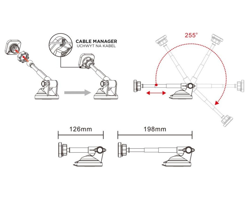 Suport magnetic auto pentru telefon, cu brat telescopic 126-198mm, rotire 360, Premium HOLD-14, AMIO AutoDrive ProParts