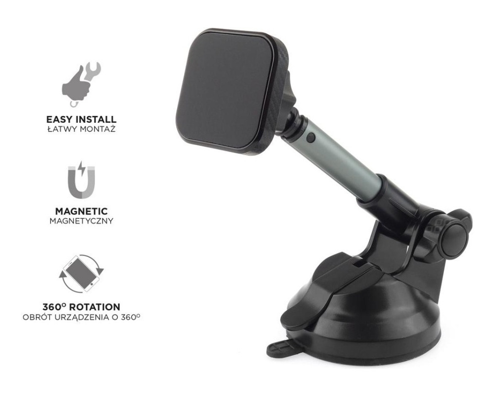 Suport magnetic auto cu brat pentru telefon cu prindere pe bordul sau parbrizul masinii. Acesta se poate ajusta 360 grade, iar cu ajutorul magnetului foarte puternic telefonul va sta fix chiar si pe cele mai accidentate drumuri.