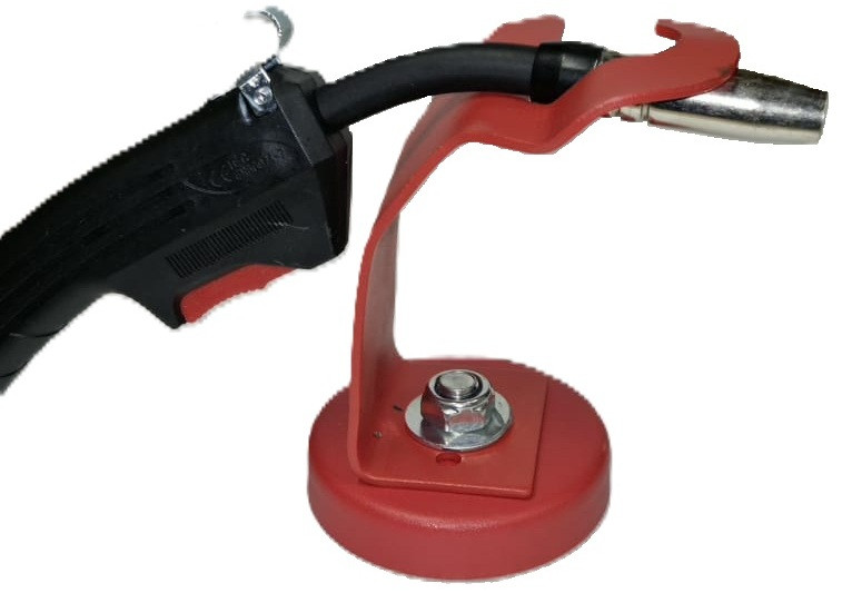 Se pozitioneaza pe o suprafata metalica stabila, in apropierea zonei de lucru, iar pistolul MIG MAG se aseaza in suport pentru depozitare temporara intre utilizari. Este ideal pentru bancuri de lucru, carcase metalice sau alte suporturi compatibile magnetic.