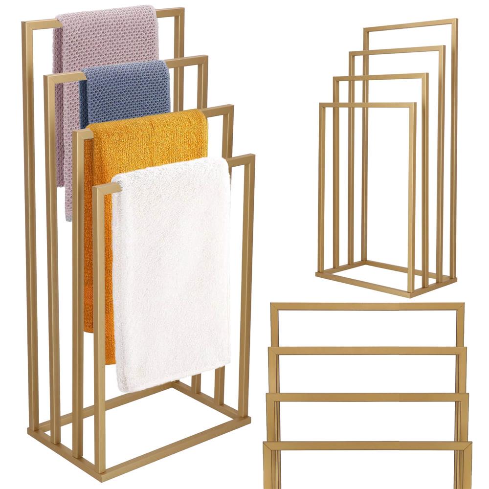 Suport metalic de baie pentru prosoape, cu 4 standuri, 96 cm, auriu mat Household NewTrend