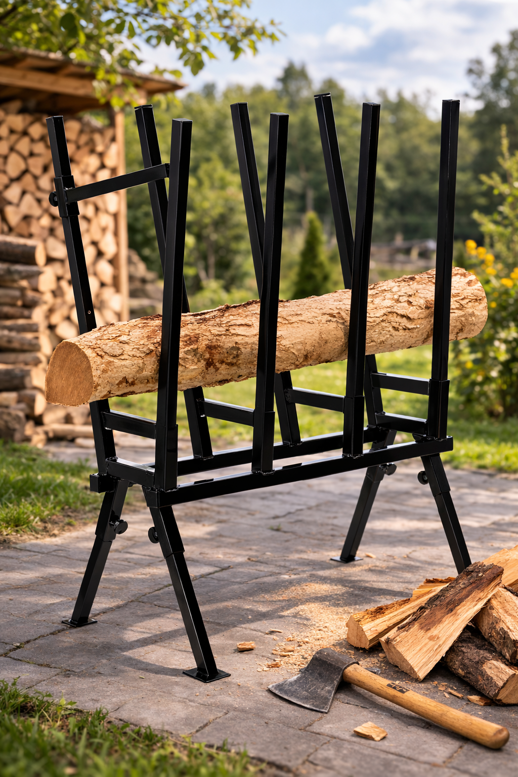 Suportul metalic pentru tăiat lemne este alegerea practică pentru cei care vor să pregătească lemnele de foc mai rapid, mai sigur și mai confortabil. Construit din oțel rezistent, acest model oferă stabilitate bună în timpul lucrului, iar sistemul pliabil și reglabil îl face ușor de folosit, transportat și depozitat.