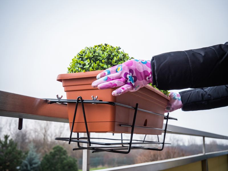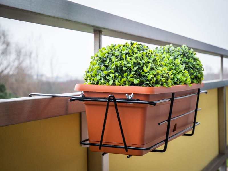Utilizare: Asezati suportul pe balustrada, fixati-l corespunzator, apoi pozitionati ghiveciul in suport. Verificati stabilitatea inainte de utilizare, mai ales in zone expuse la vant.