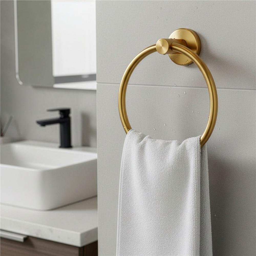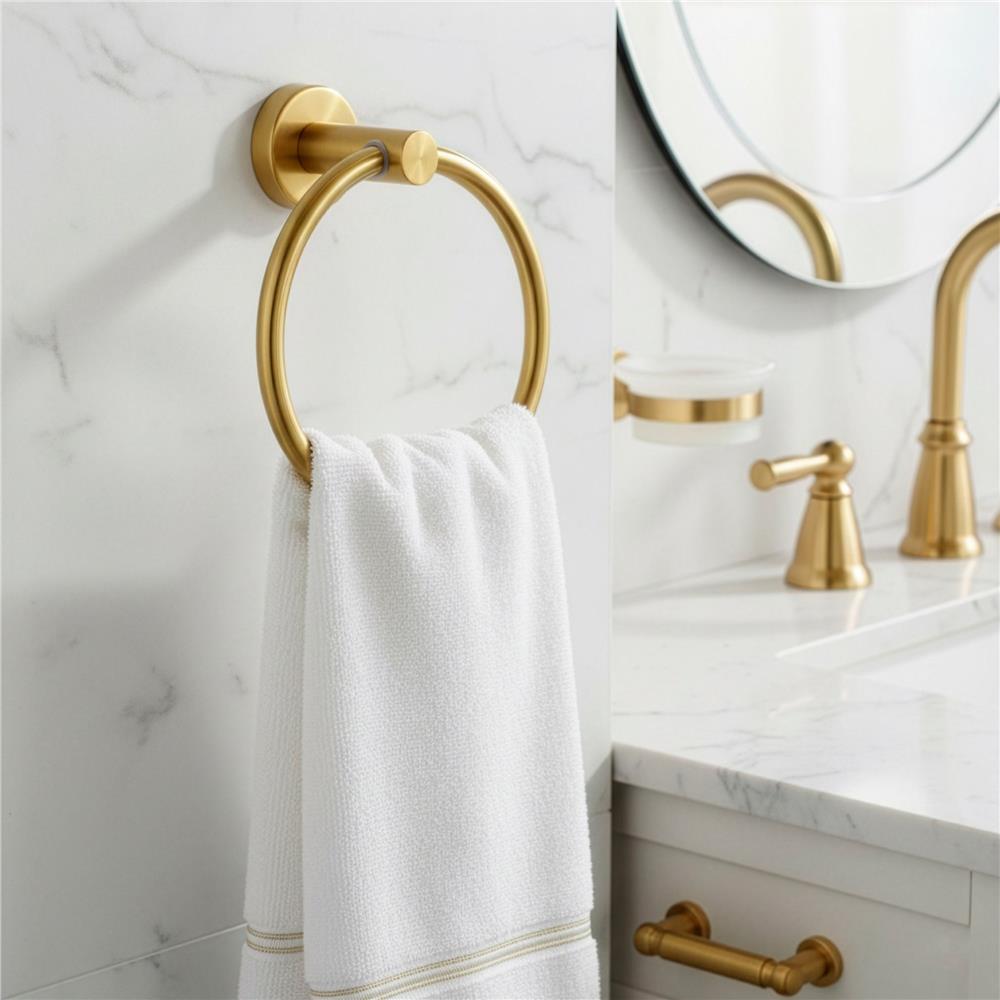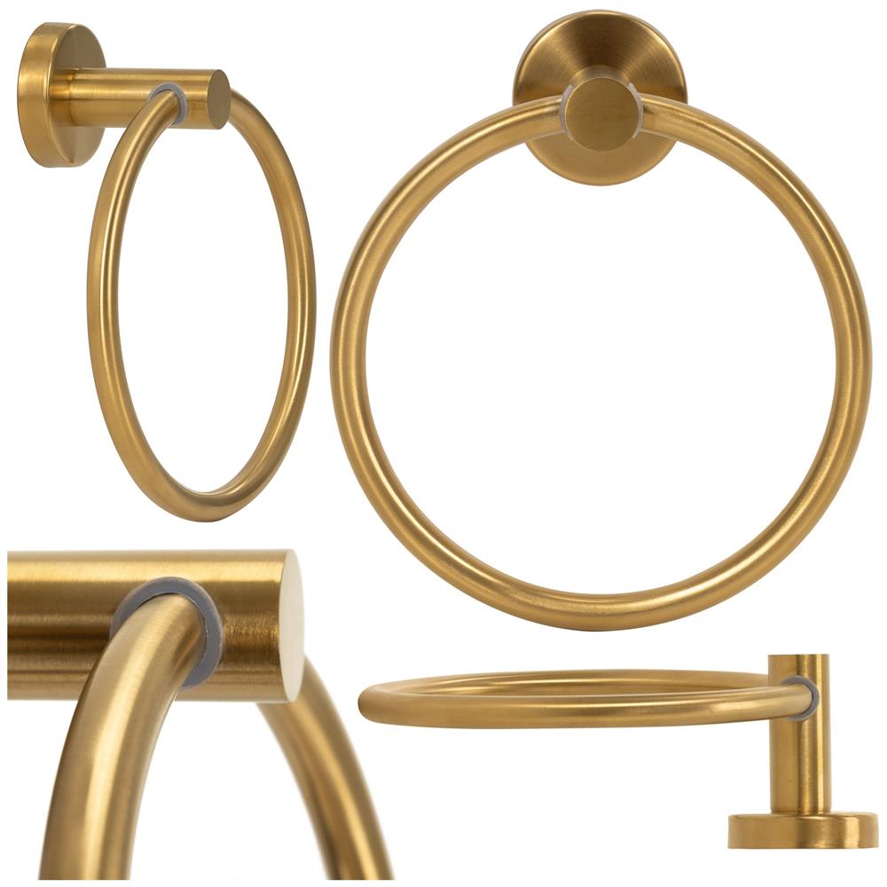 Suport metalic tip inel pentru prosop, inox cu finisaj lucios, diametru 17 cm, accesorii montaj incluse, auriu Household NewTrend