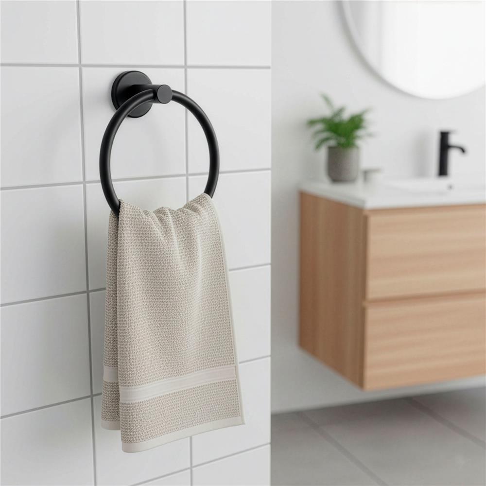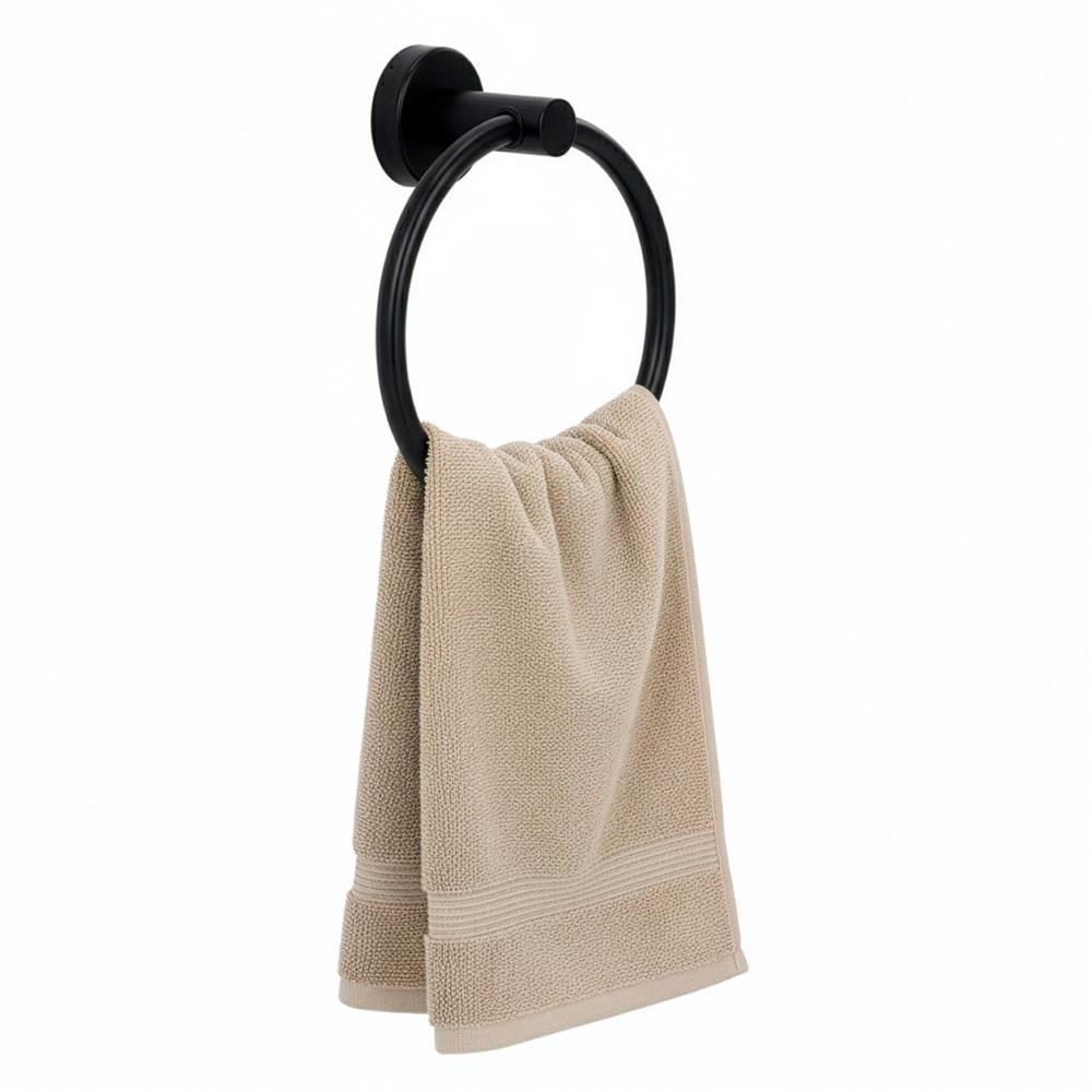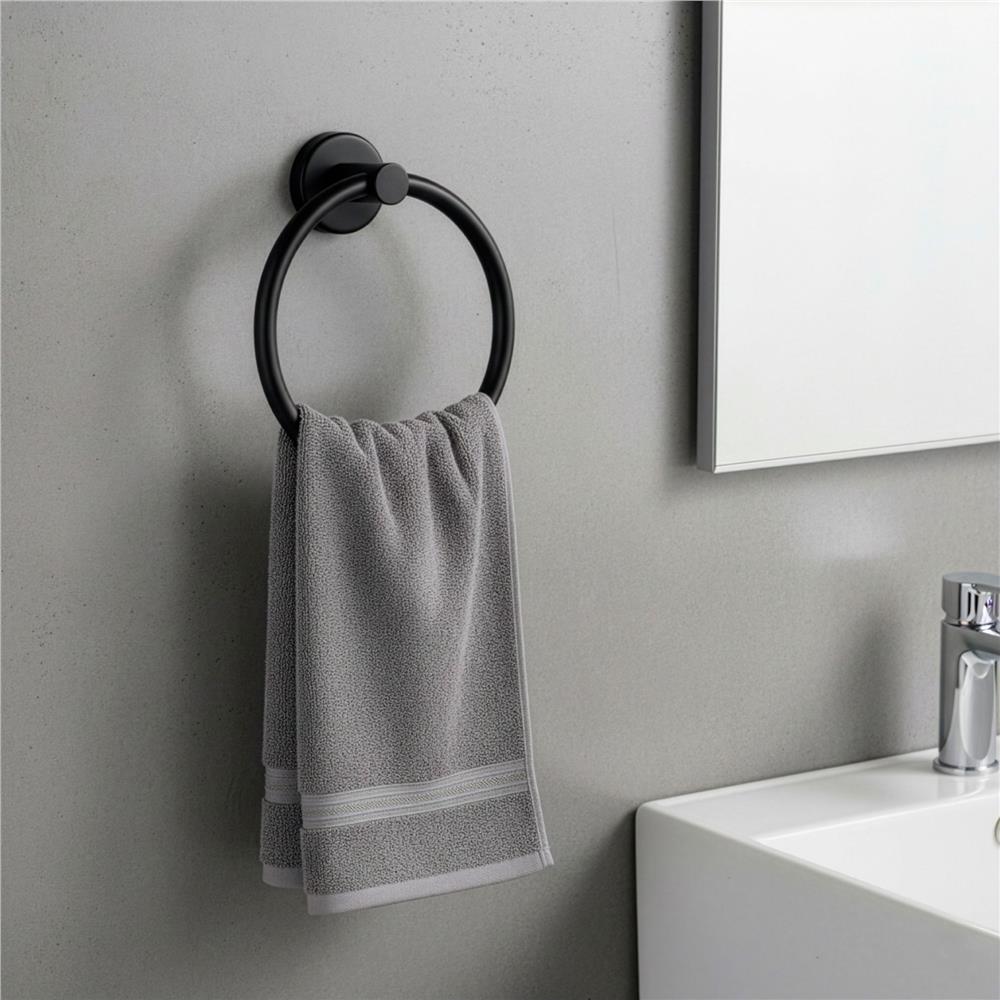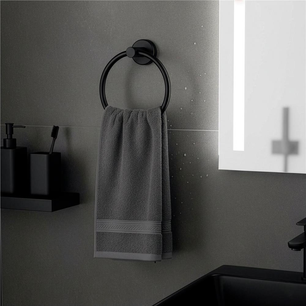 Suport metalic tip inel pentru prosop, inox cu finisaj mat, diametru 17 cm, accesorii montaj incluse, negru Household NewTrend