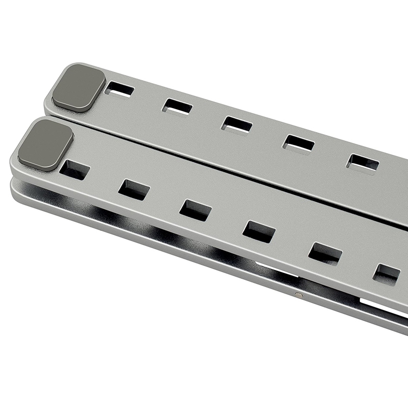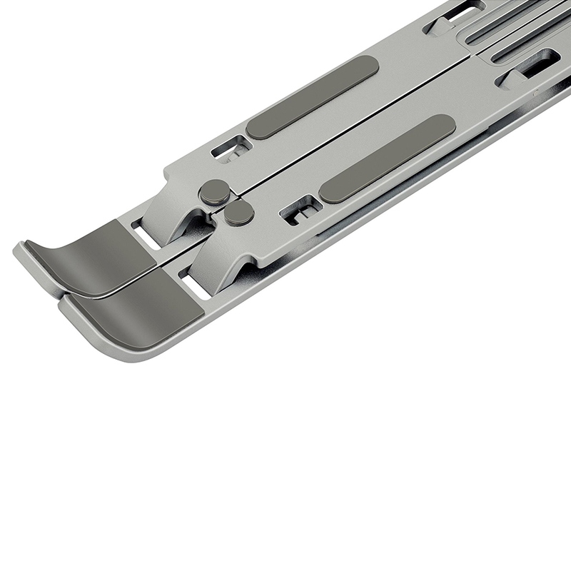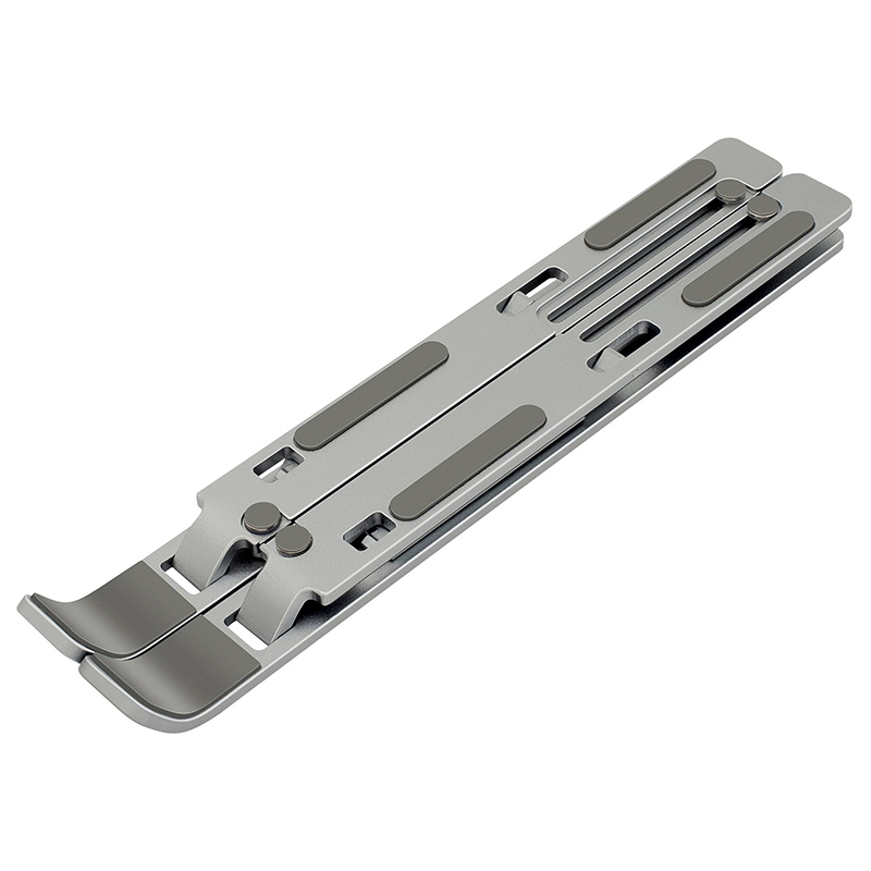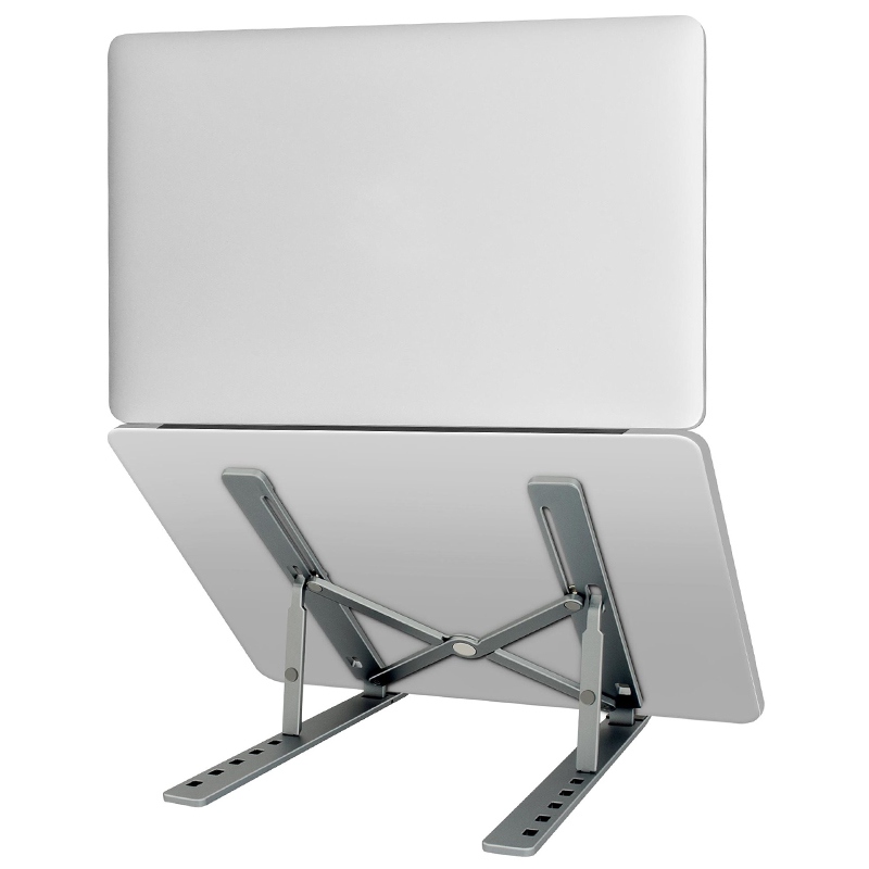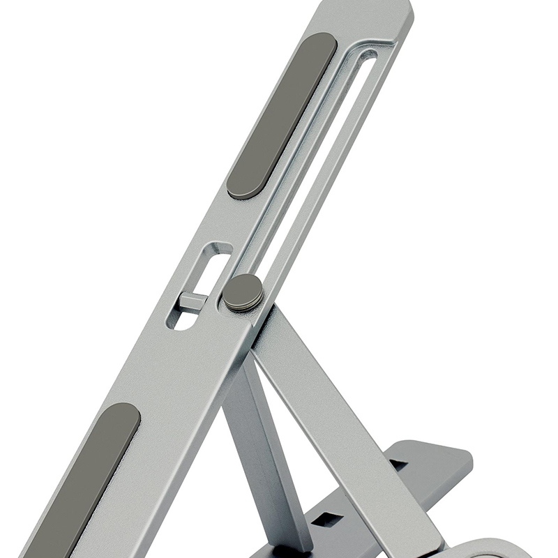 Suportul metalic portabil pentru tablete și laptopuri de până la 15,6″” permite reglarea a până la 6 unghiuri de vizualizare diferite. Prin simpla pliere, poti lua suportul cu tine la birou, acasa sau in deplasare. Este inclusă o husă de pânză pentru a îmbunătăți precizia monturii. Proprietățile anti-alunecare asigură stabilitate în timpul lucrului și protejează dispozitivul de zgârieturi. Capacitatea de a seta până la 6 unghiuri de vizualizare promovează o mai bună ergonomie a corpului atunci când lucrezi. Utilizați laptopul ca computer desktop. Designul suportului îmbunătățește răcirea laptopului în timpul lucrului.