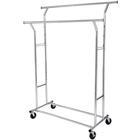 Suport mobil cu roti pentru haine, Songmics, reglabil, metal, argintiu, max 110 kg, 129x55x148 cm GartenVIP DiyLine