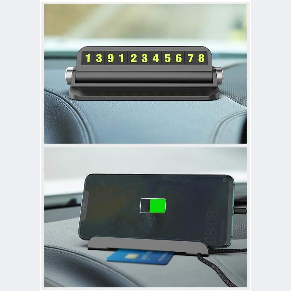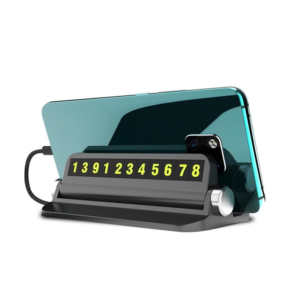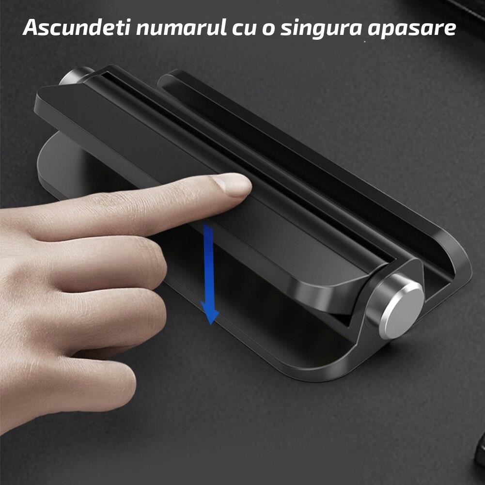 Suport numar telefon auto pentru parcare temporara cu suport telefon, negru