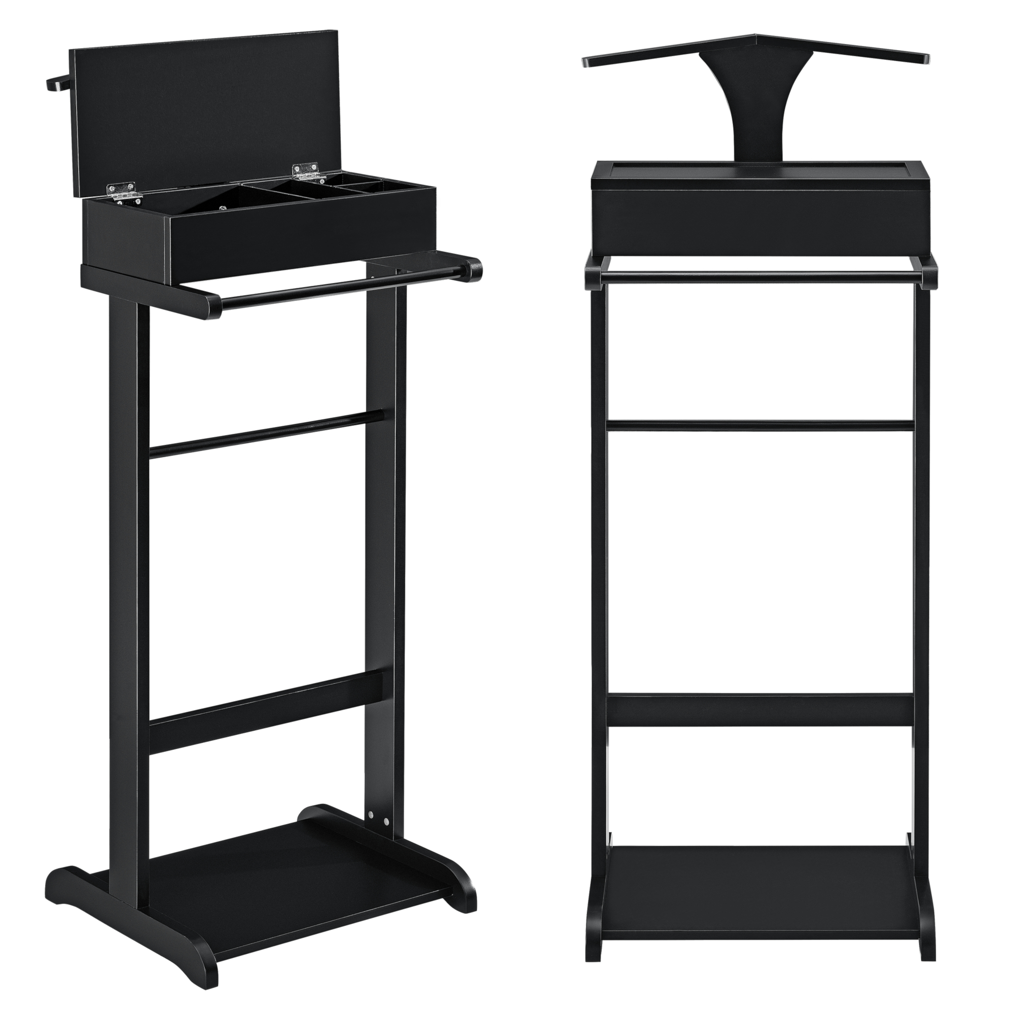 Suport Organizator pentru Haine cu Umeras, Raft Incaltaminte si 4 Compartimente, Lemn Negru