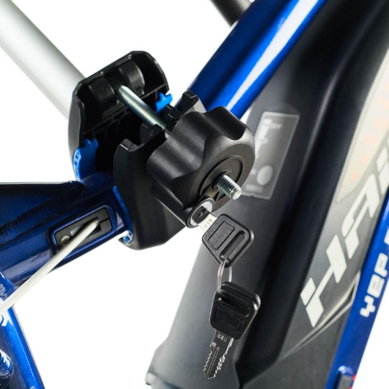Sistem de blocare de inalta siguranta pentru suportul de biciclete si pentru biciclete.