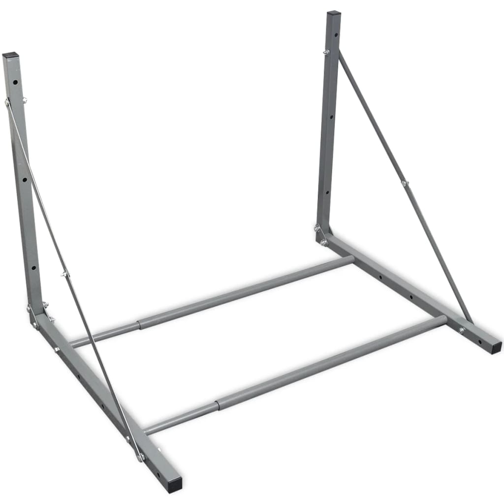 Acest suport pentru pneuri poate fi montat rapid pe perete și pliat plat la nivelul peretelui atunci când nu este utilizat. Poate fi folosit și pentru a stoca biciclete și alte articole.