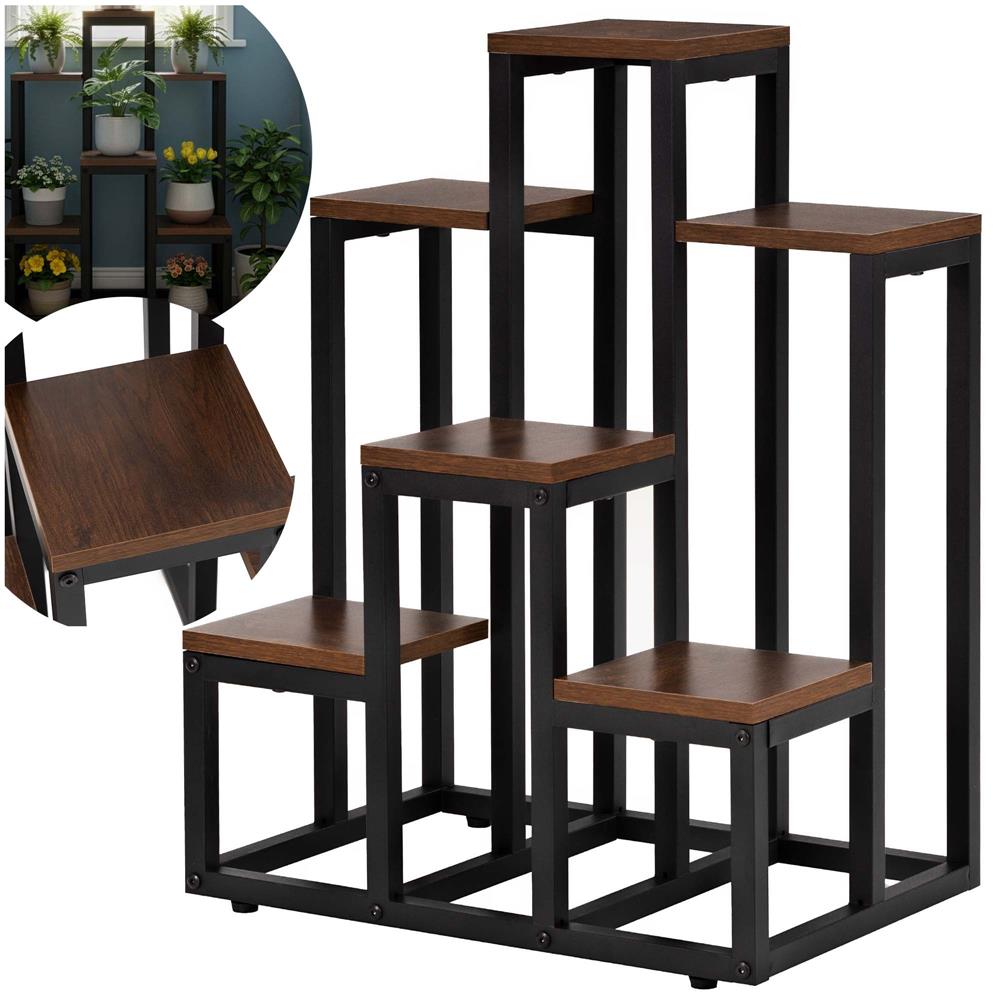 Suport pentru flori cu 6 polite din lemn, structura metal, 51x34x68 cm, negru Household NewTrend