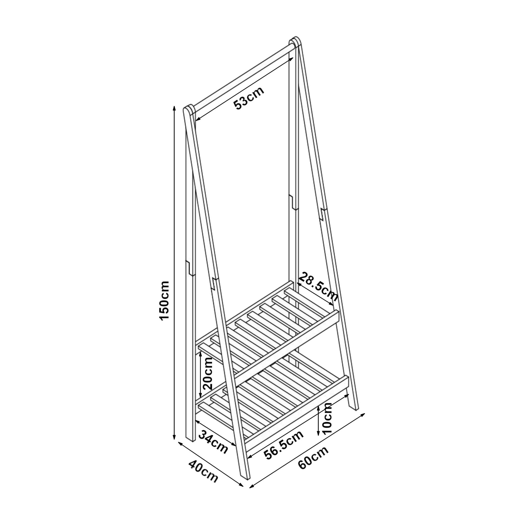 Descriere Suport haine bambus 2 rafturi, 150x60x40